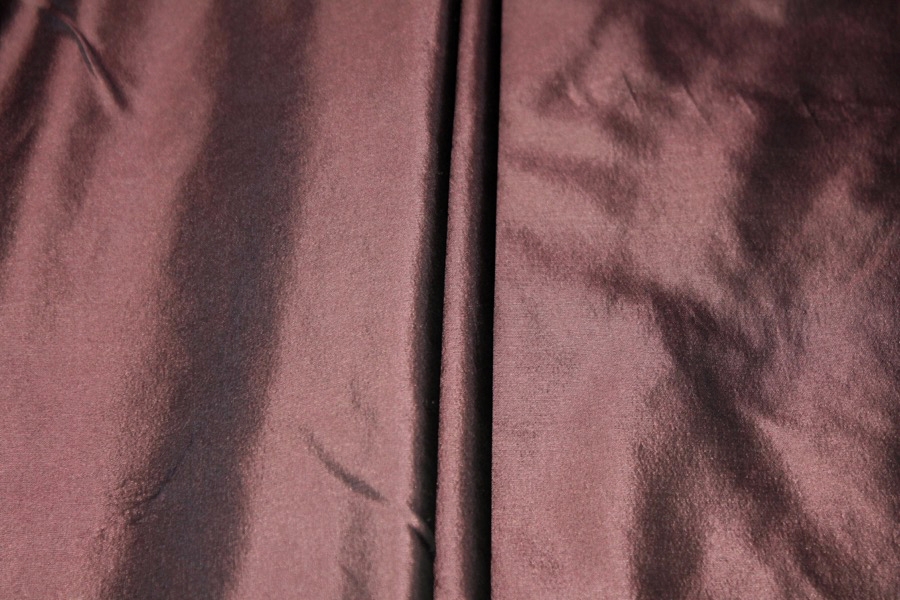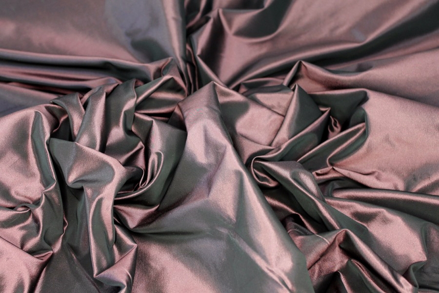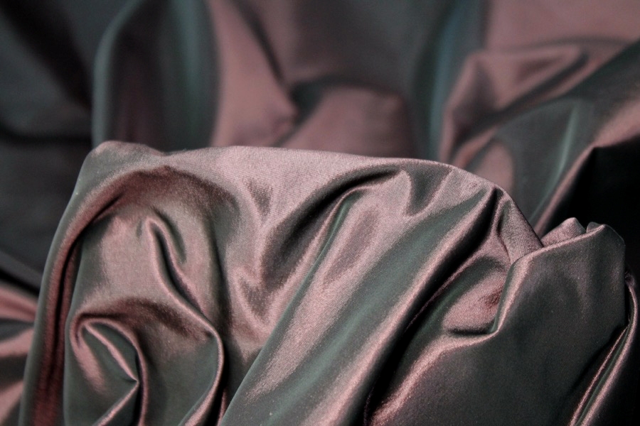 Our French made 100% acetate taffetas are crisp in structure, woven tightly to give the classic smooth taffeta finish. It's a firm fabric, this one in pink shot with black, resulting in a dark plum colour.