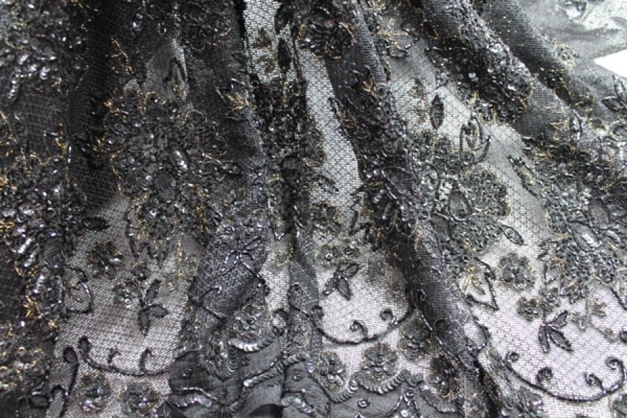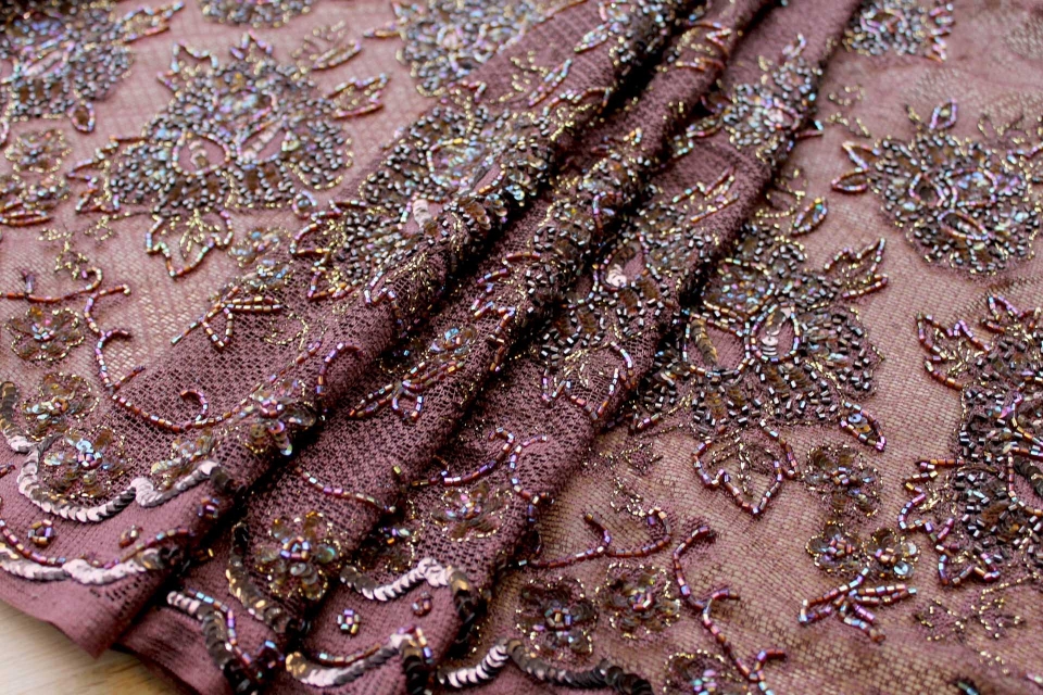 Brown Lace Mesh with Floral Gold Embroidery and Brown BeadsSpecial Price £55.00 Regular Price £80.00