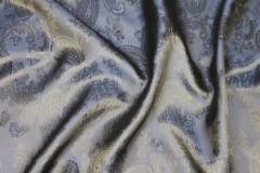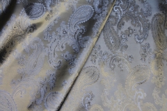 A breathable anti-static lining in grey with a paisley pattern to it, reversible so it has two slightly different colours. It looks navy at first glance, but has a golden green sheen to it when moved. It is light-weight and works well as a lining for jackets and coats, or as a decorative back on a waistcoat. 100% acetate.