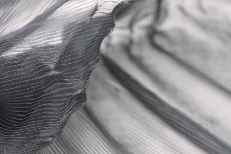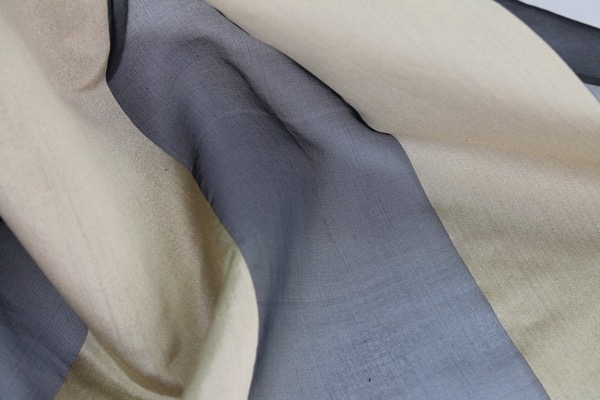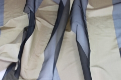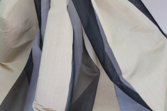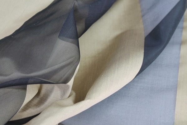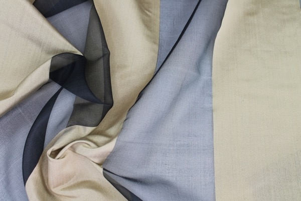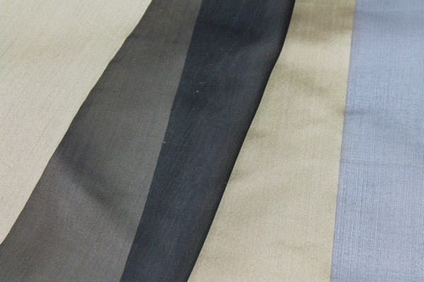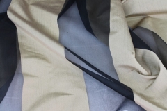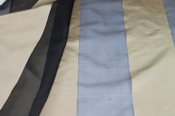 A high quality silk organza in black with wide gold satin stripes, the stripes measure approx 12cm. 100% silk and 140cm wide.