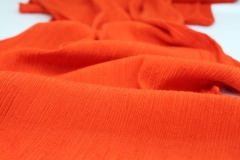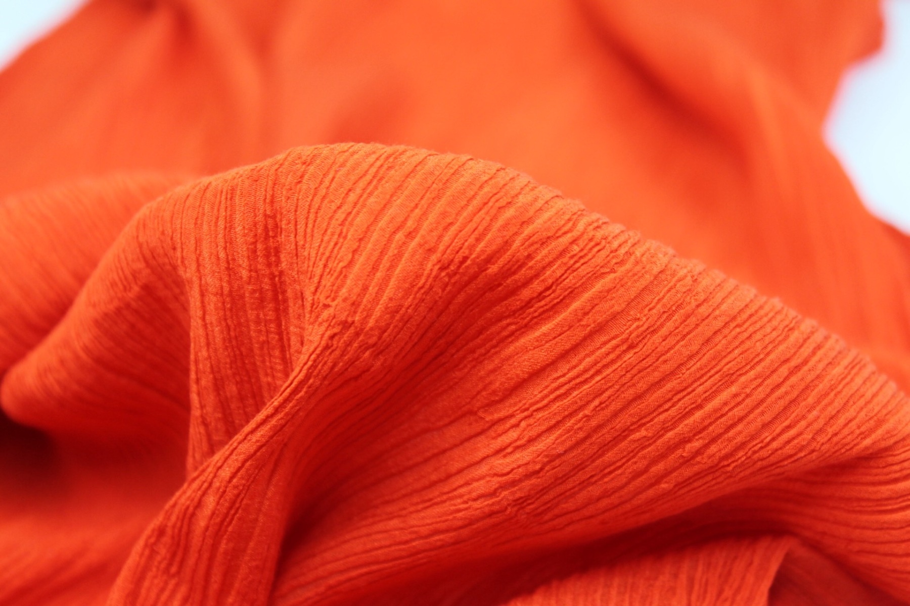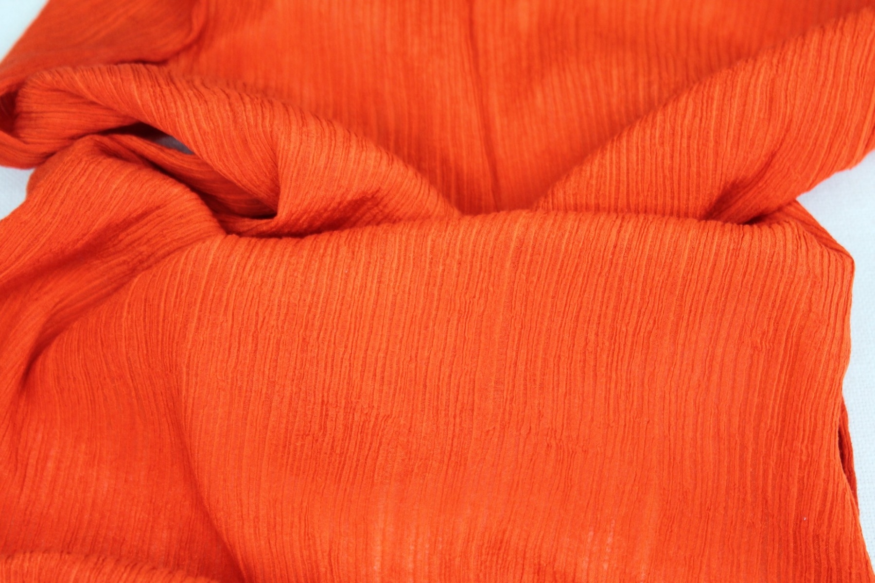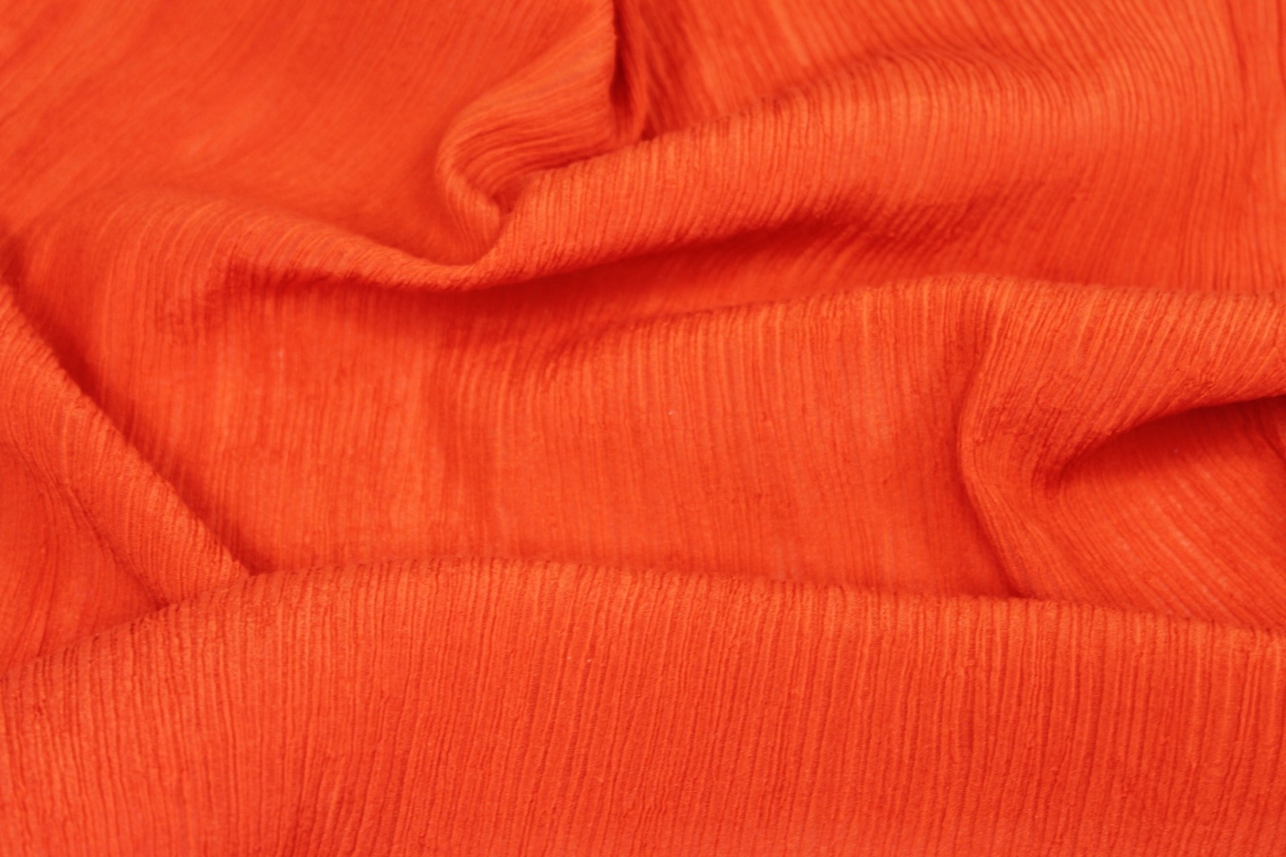 Silk and cotton mix fabric, which has been washed to an irregular wavy crinkle effect, in orange.