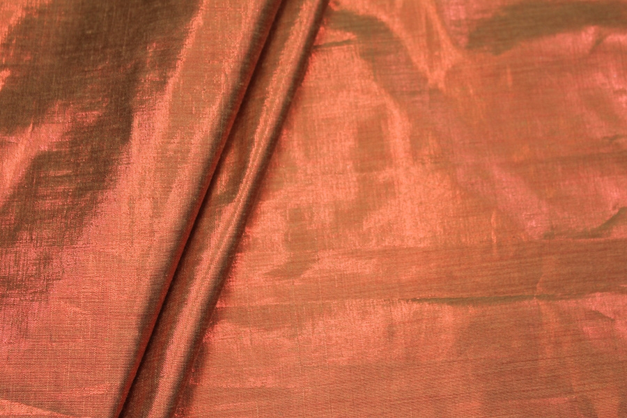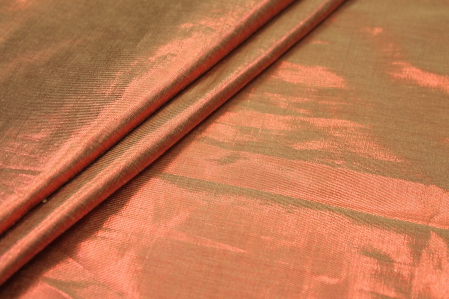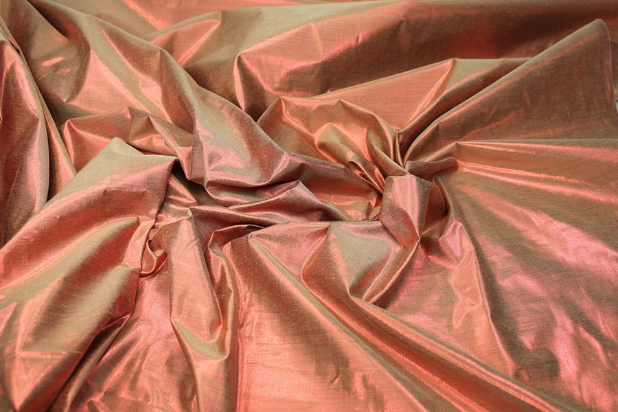 A beautifully structured cloth, woven with red lurex thread and gold polyester thread to give a high metallic sheen.