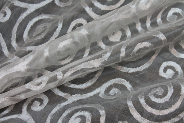 A sheer check polyester organza in ivory. The check pattern is about 1x1cm, the stripes creating the check are about 5mm from thicker ivory thread woven into the sheer organza.