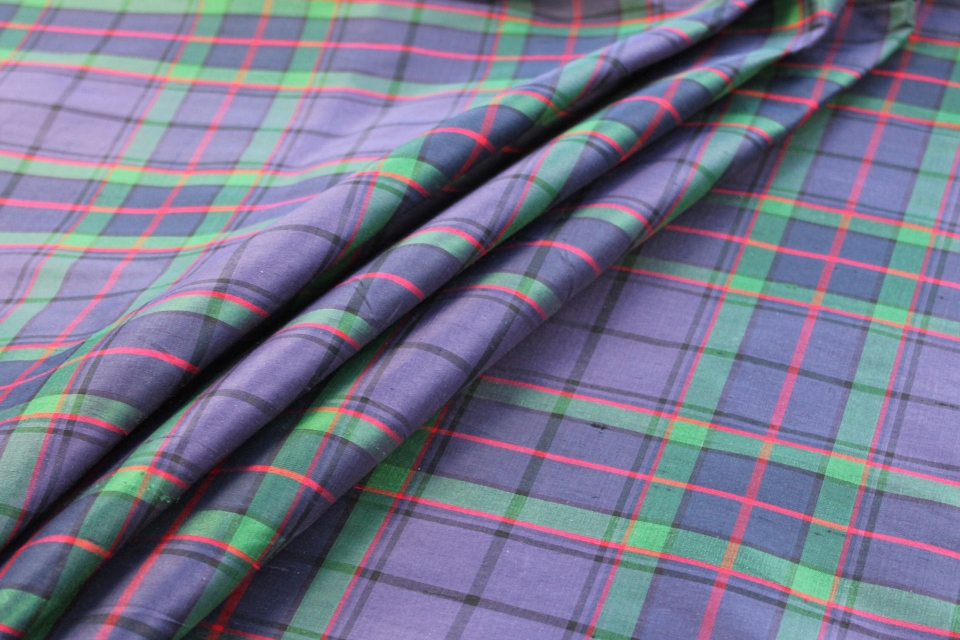 Tartan Check Silk Dupion - Cream, Green and Grey is available to buy in increments of 0.1 metres.