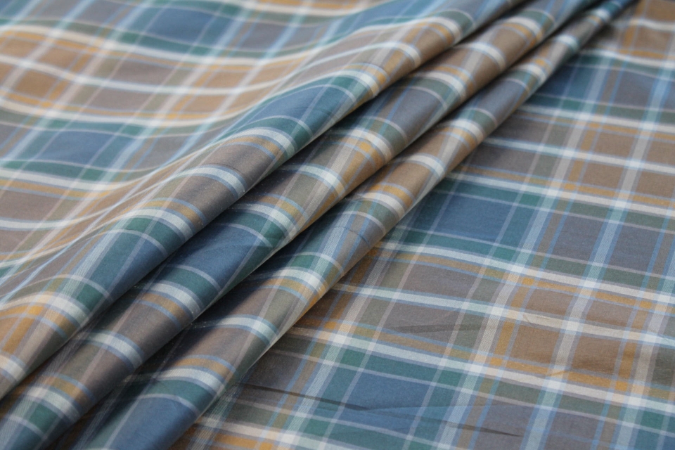 Tartan Check Silk Dupion - Cream, Green and Grey