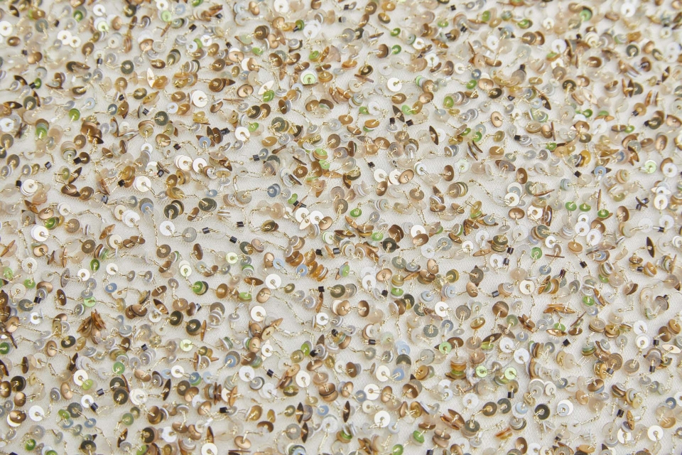 Triangular Silver, Green and Gold Sequins on Blue MeshSpecial Price £79.00 Regular Price £145.00