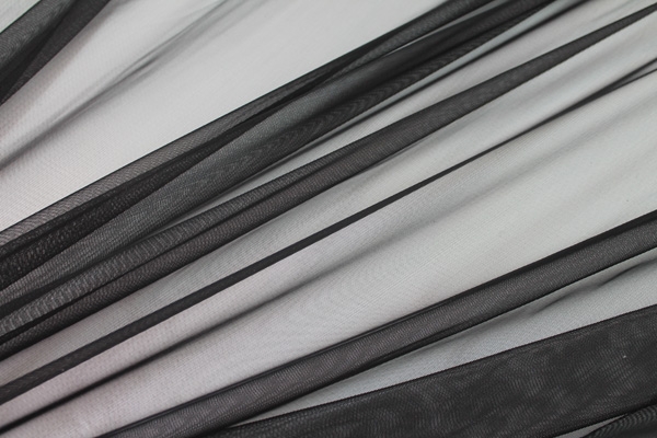 This is a stretch tulle, a sheer bodystocking mesh, great for dresses or costumes where transparency and give is needed. Black in colour, also available in other colours.