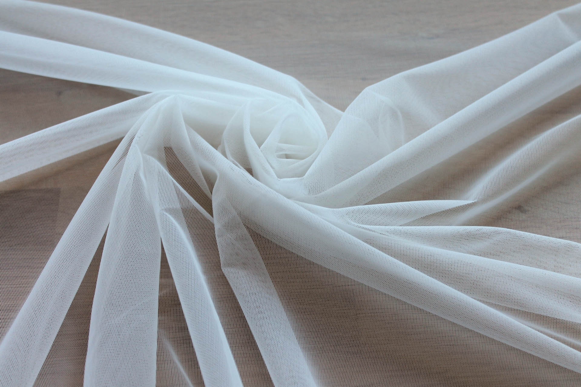 This is a stretch tulle, a sheer bodystocking mesh, great for dresses or costumes where transparency and give is needed. Ivory in colour, also available in other colours.