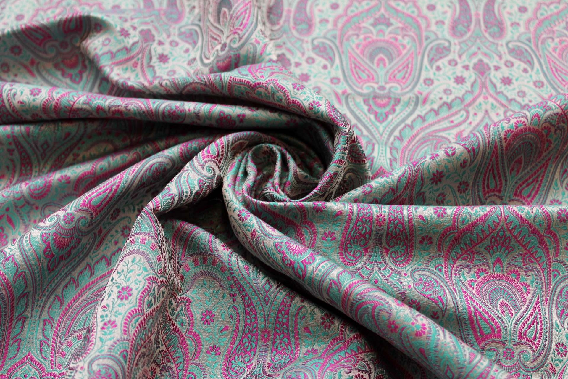 100% polyester brocade, from the Banaras region of India.