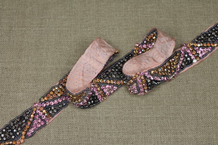 Beaded Diamanté Grosgrain Ribbon in Pink Gold and Grey