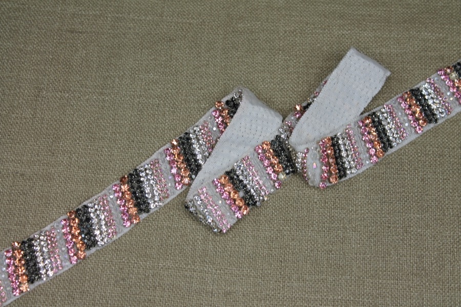Beaded Diamanté Grosgrain Ribbon in Pink Gold Charcoal and Silver