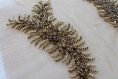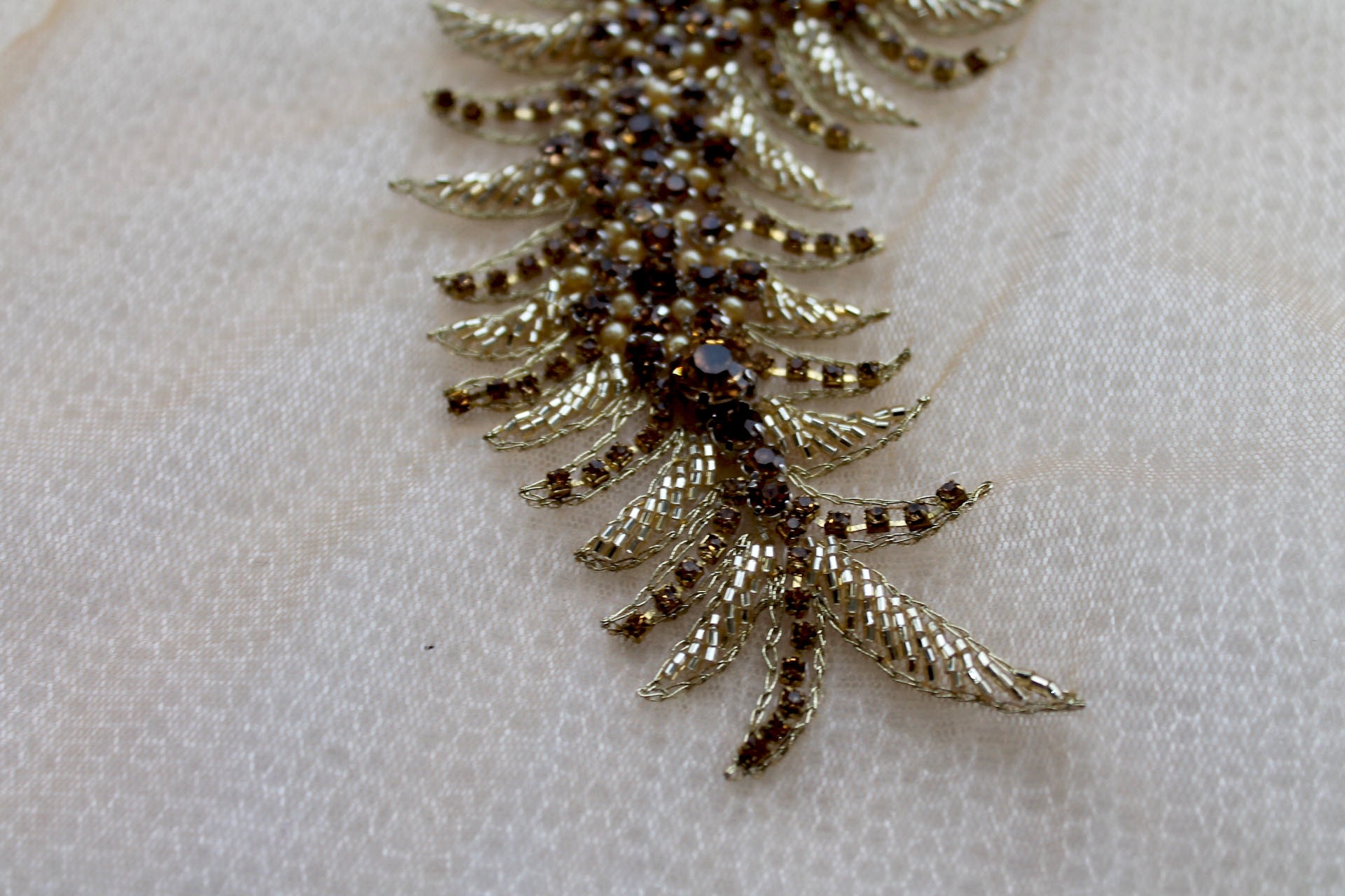 A gorgeous vintage style 3166 diamante motif which has been hand beaded with 3166 seed and bugle beads and high quality amber/gold cut glass crystals.