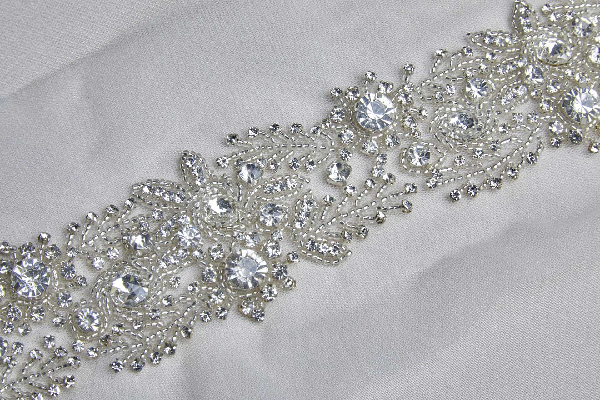 Beaded Floral Diamante Trim in Silver is available to buy in increments of 0.1 metres.