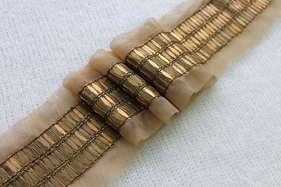Trim measures approximately 15mm. Invisible thread is used to ensure delicacy.