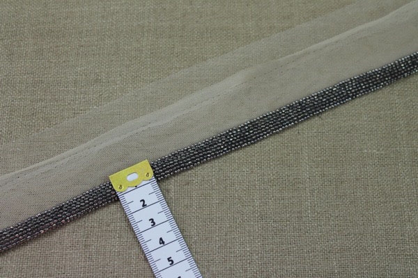 Trim measures approximately 10mm. Invisible thread is used to ensure delicacy.