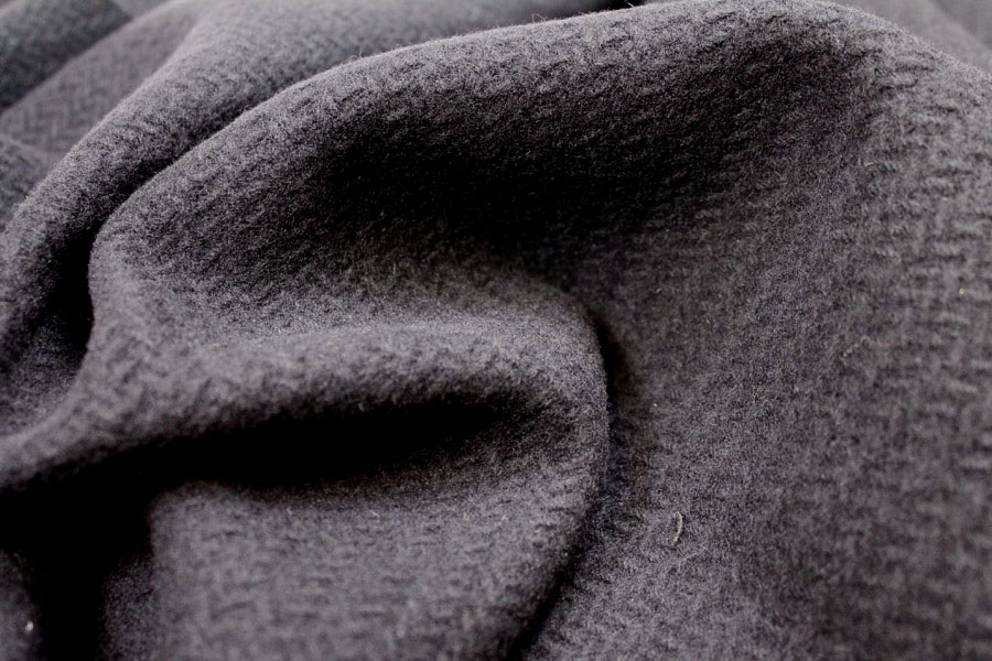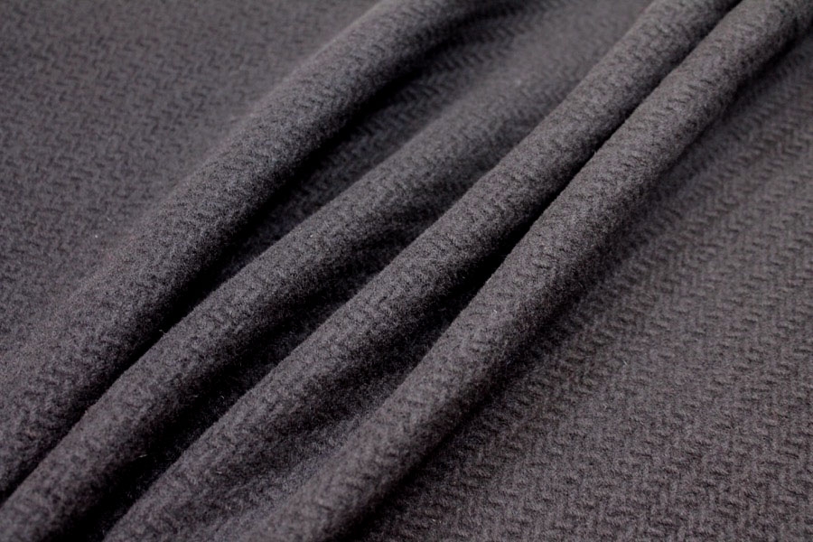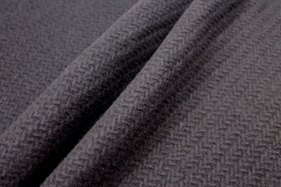 A high quality Italian wool in a black, which has been woven in a basket weave pattern. This fabric would be perfect for jackets or coats.