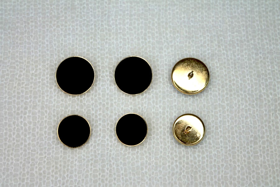 This is a vintage style shank button in gold metal with a black nylon cabouchon inlay. Measures about 2.3cm across, there is also a smaller version.