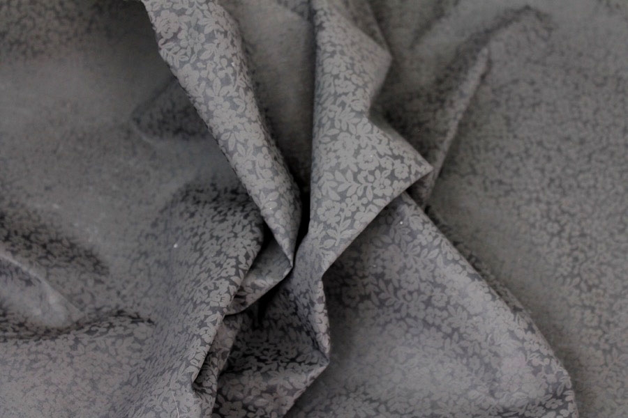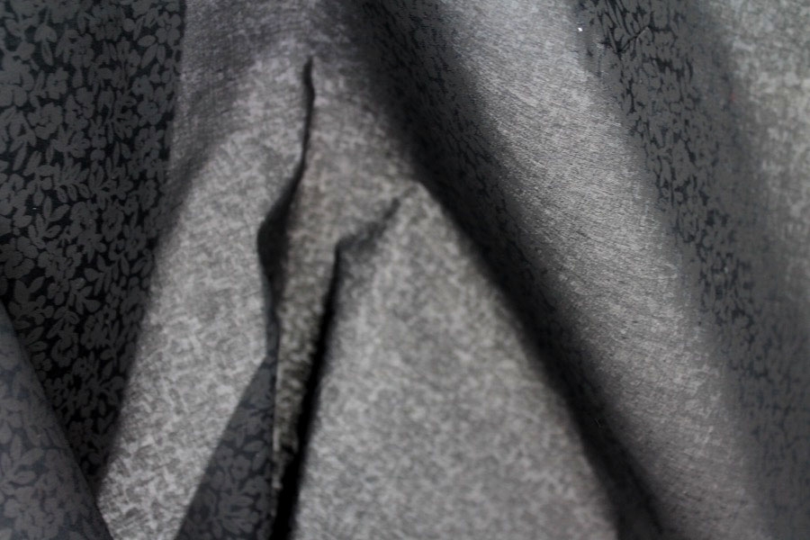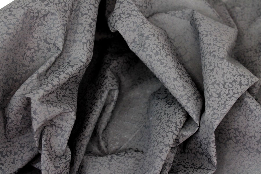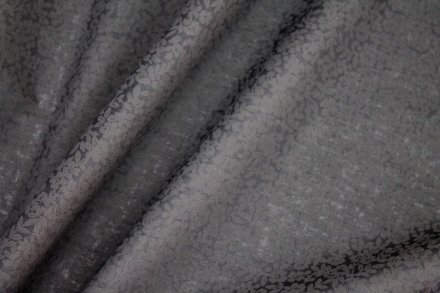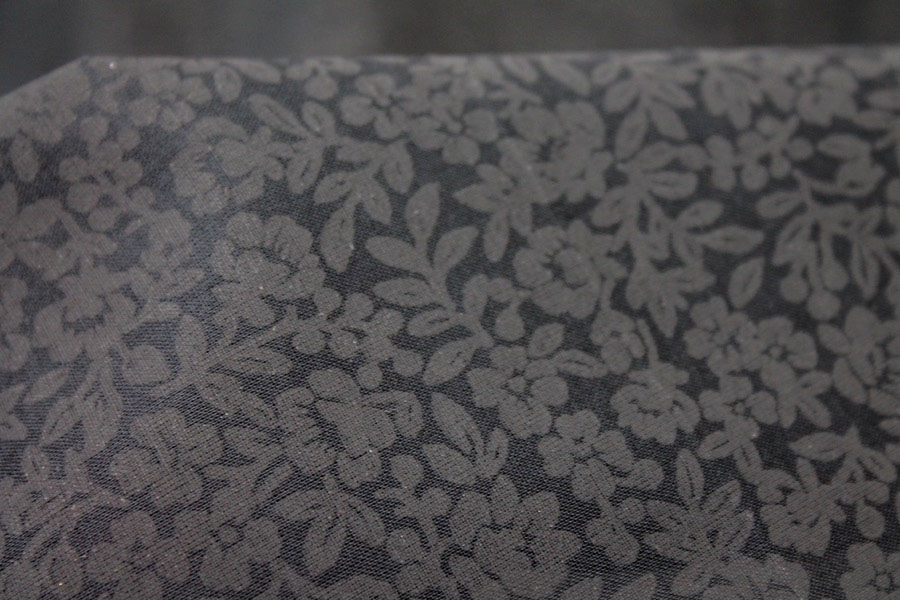 A high quality floral printed sheer cotton in black on black. 100% cotton.