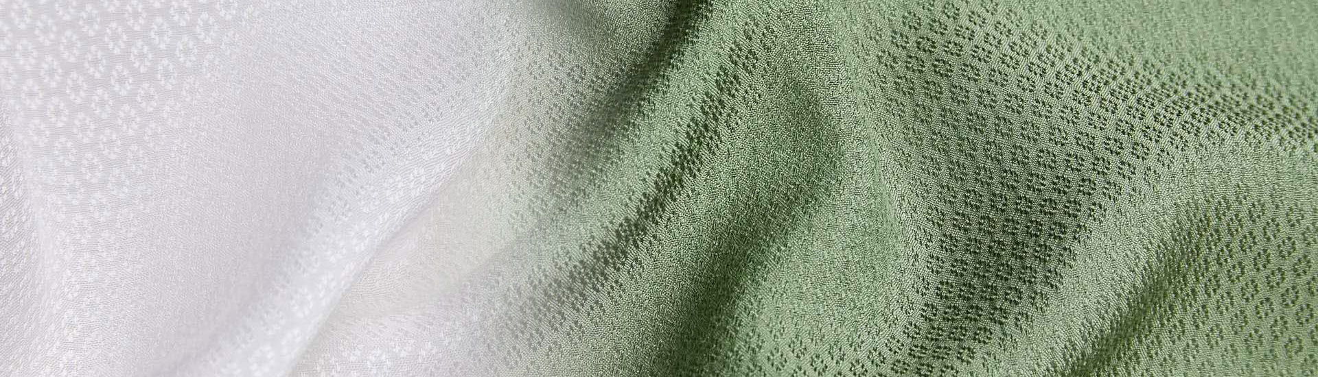 Below you can see the Eucalyptus Fibre fabric dyed green, it brings out the pattern in a different way, and the fabric remains as soft and supple as it was before.