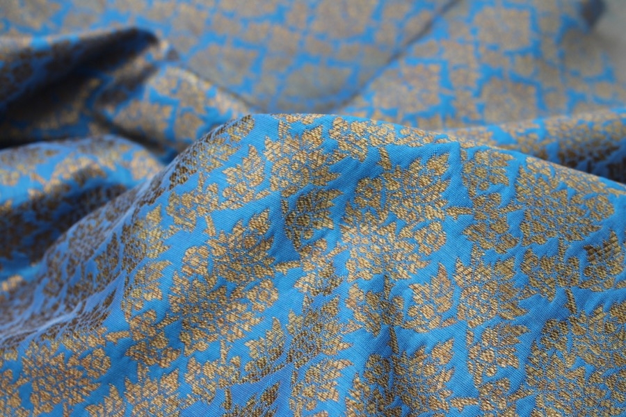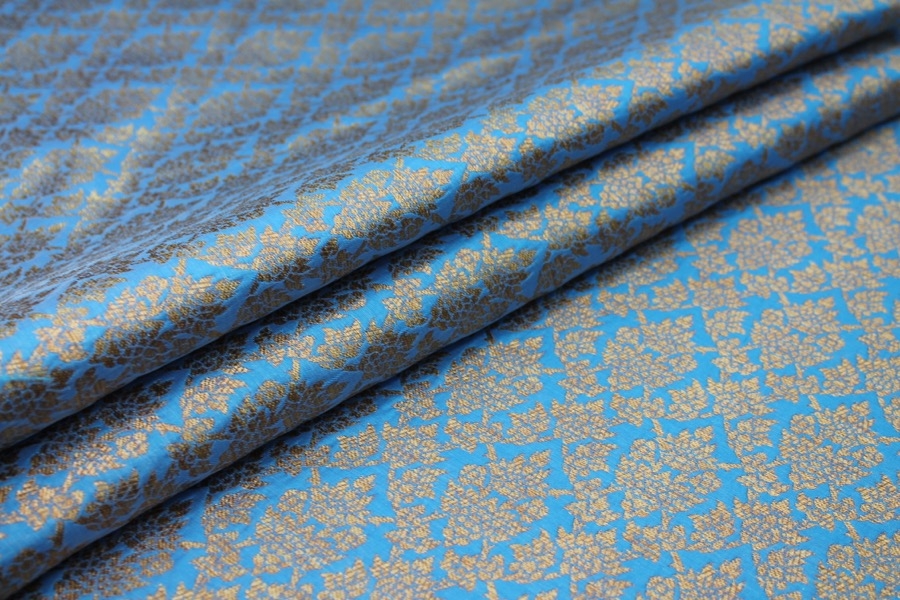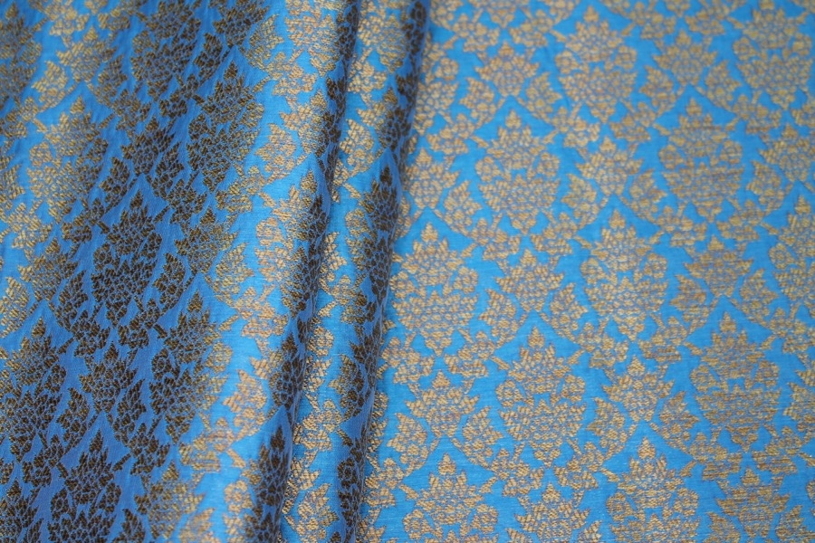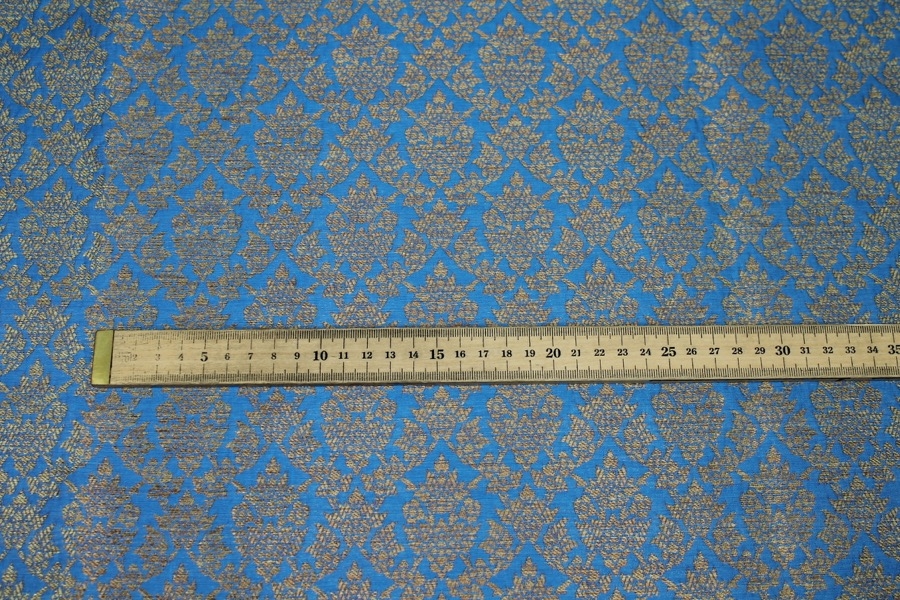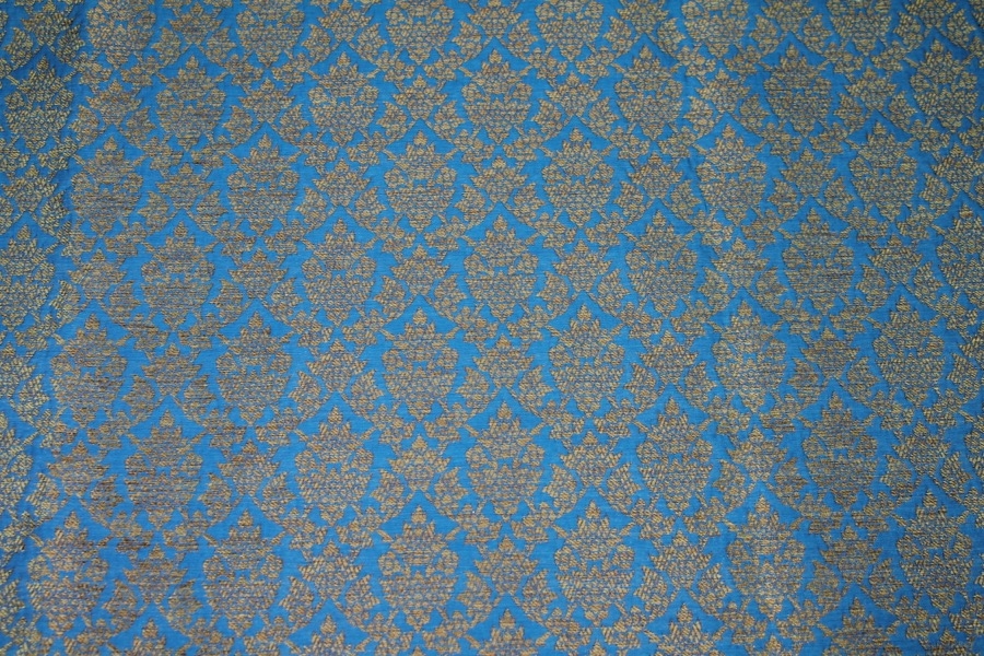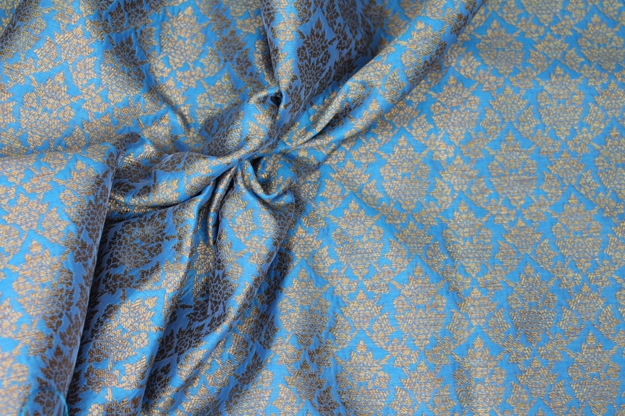 Bright Blue and Gold Ornamental Brocade
