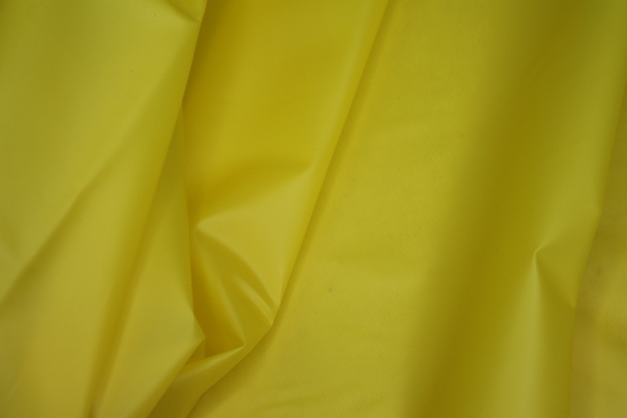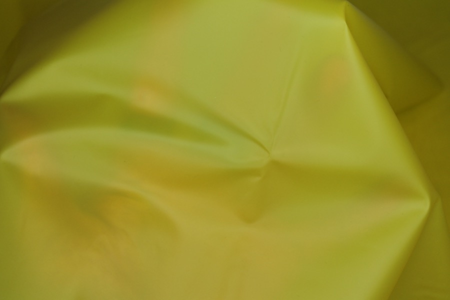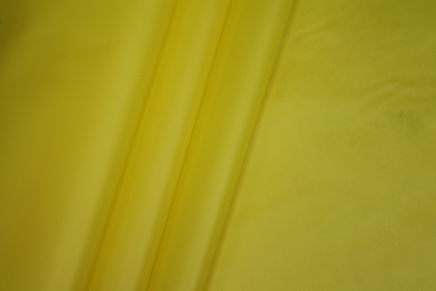 Bright yellow semi transparent PVC, semi-sheer plastic type fabric, non-woven. 130cm wide.