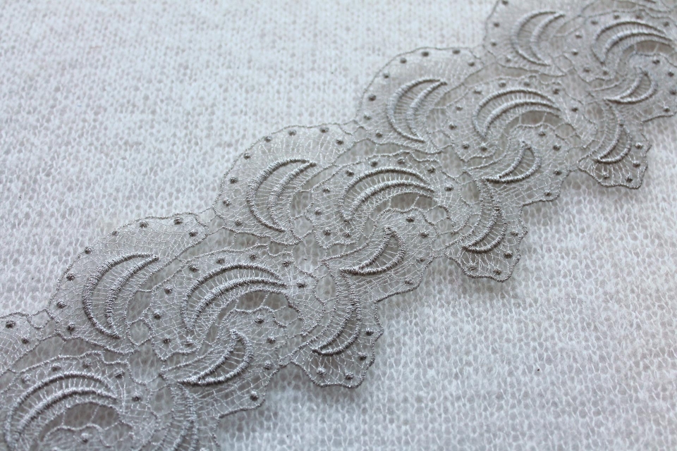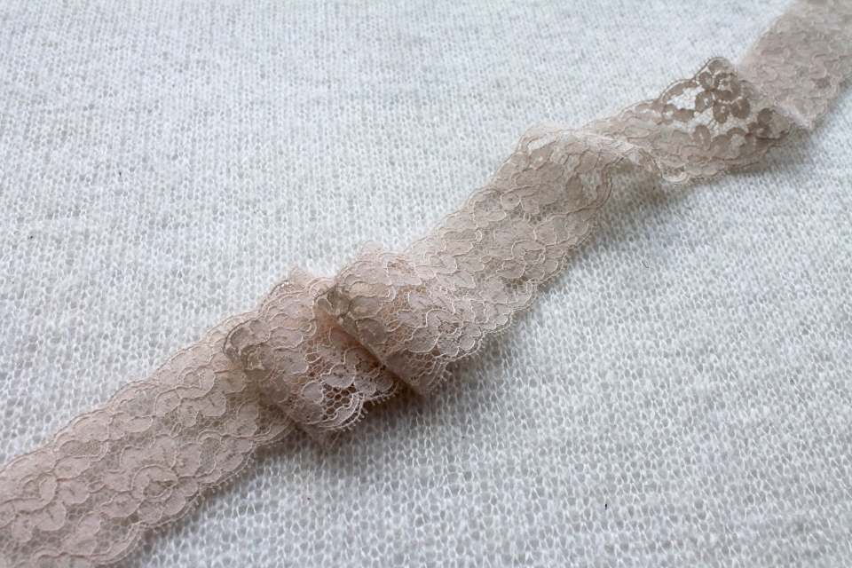 A small corded lace trim in ivory. Measures 2.5 cm's at the widest point.