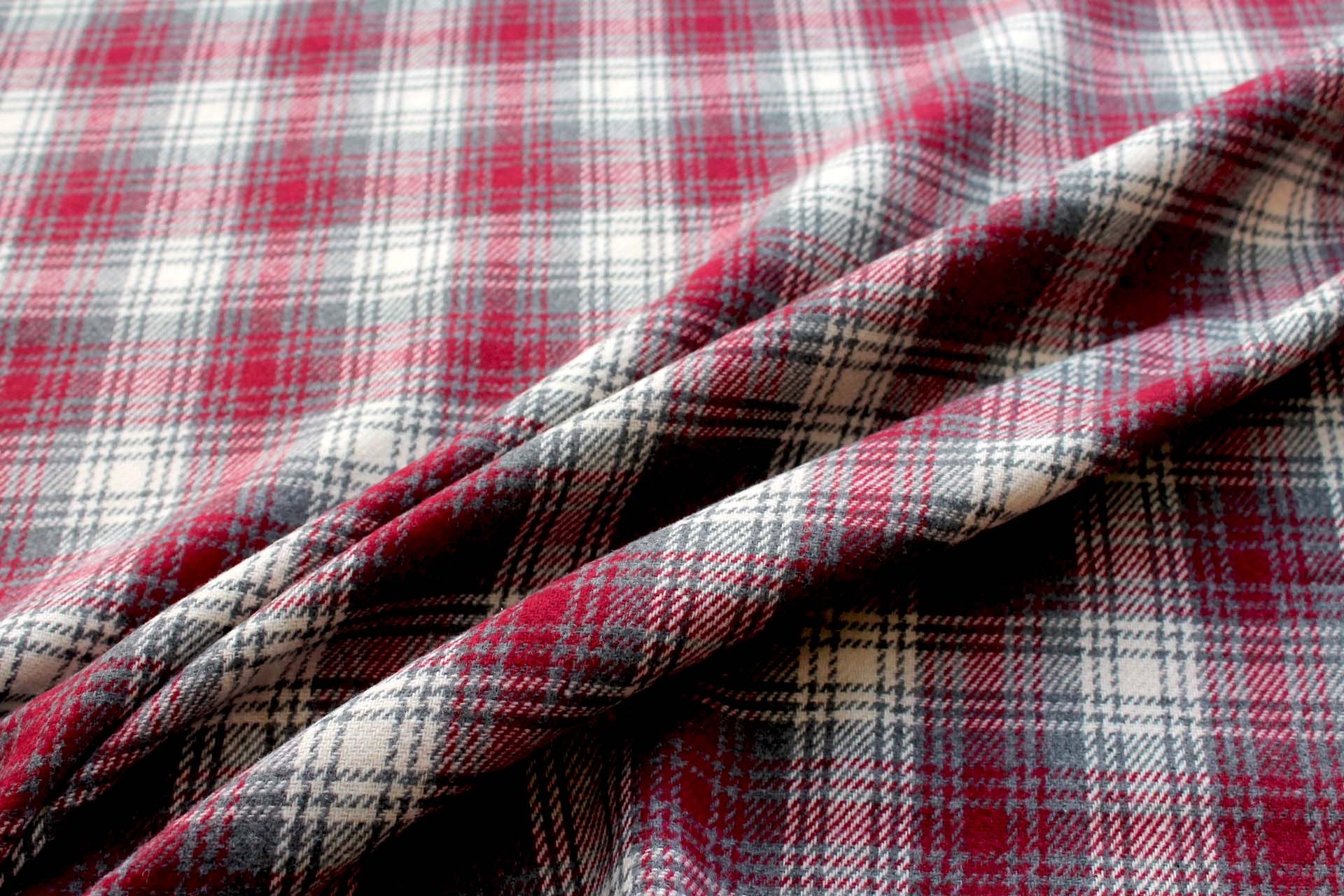 Checked Wool Flannel - Grey, Burgundy & Ivory