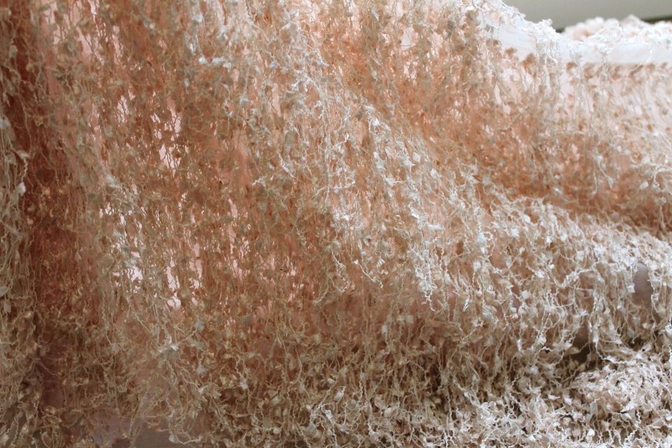 This is a fun and funky tassel fabric made from chenille thread tassels sewn onto a plain nylon tulle.