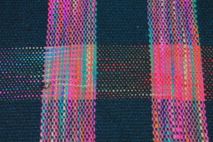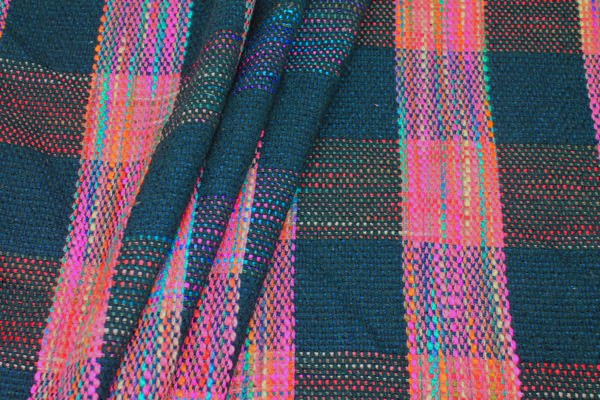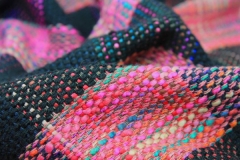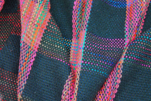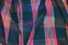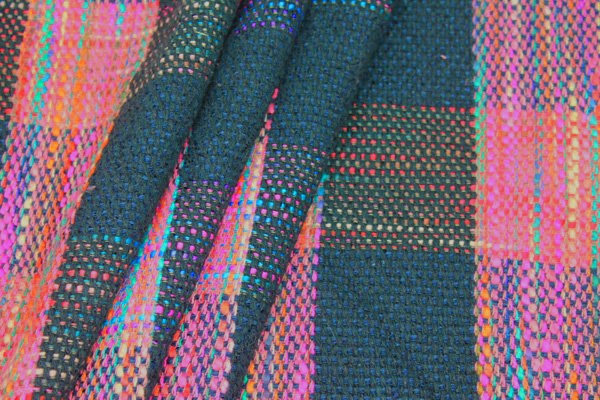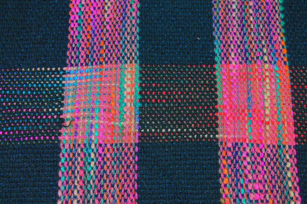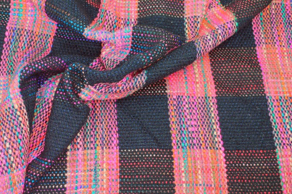 This one is woven in black and pink in a large check pattern, and also has various shades of purple, turquoise, orange, blue and cream woven through the check pattern.