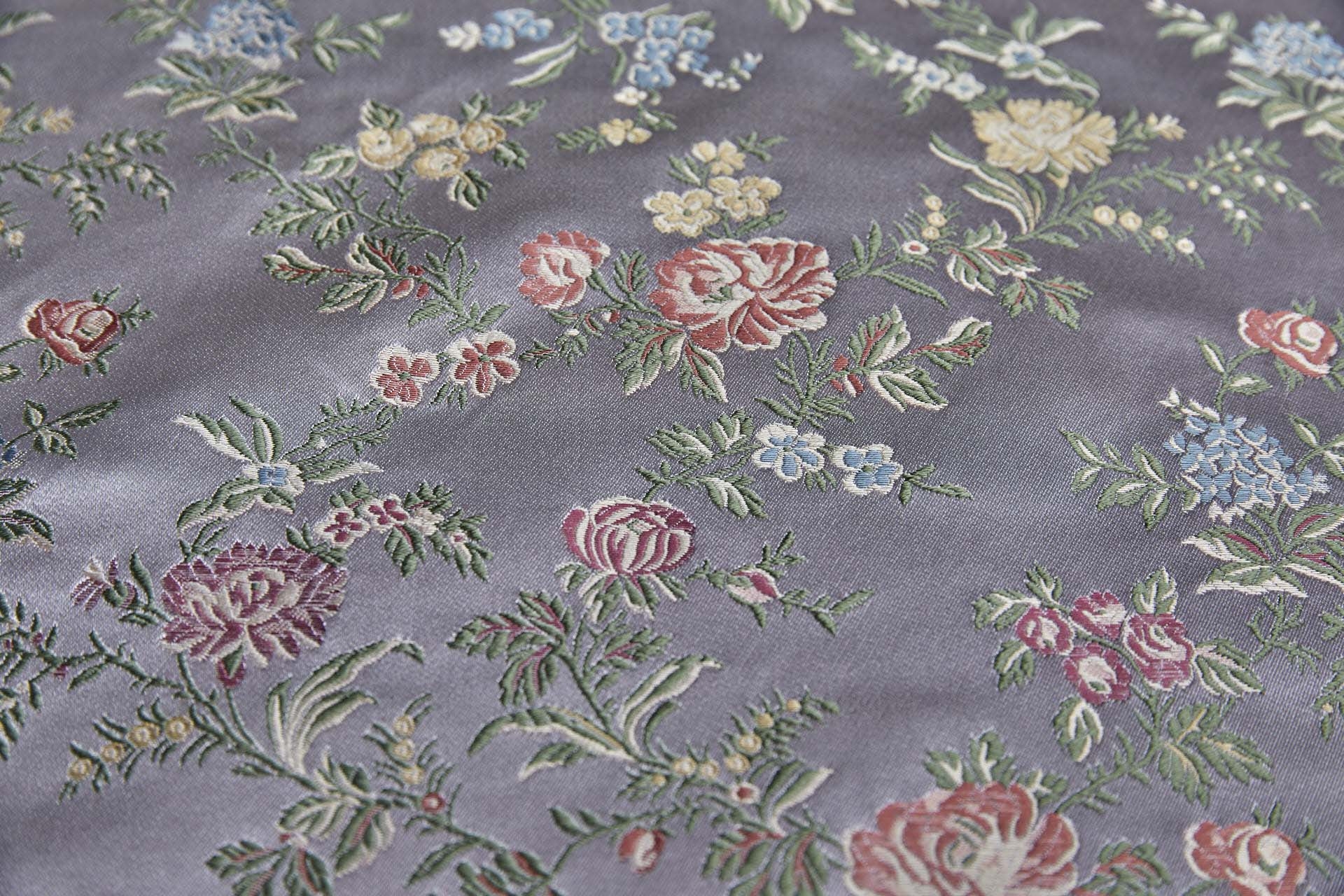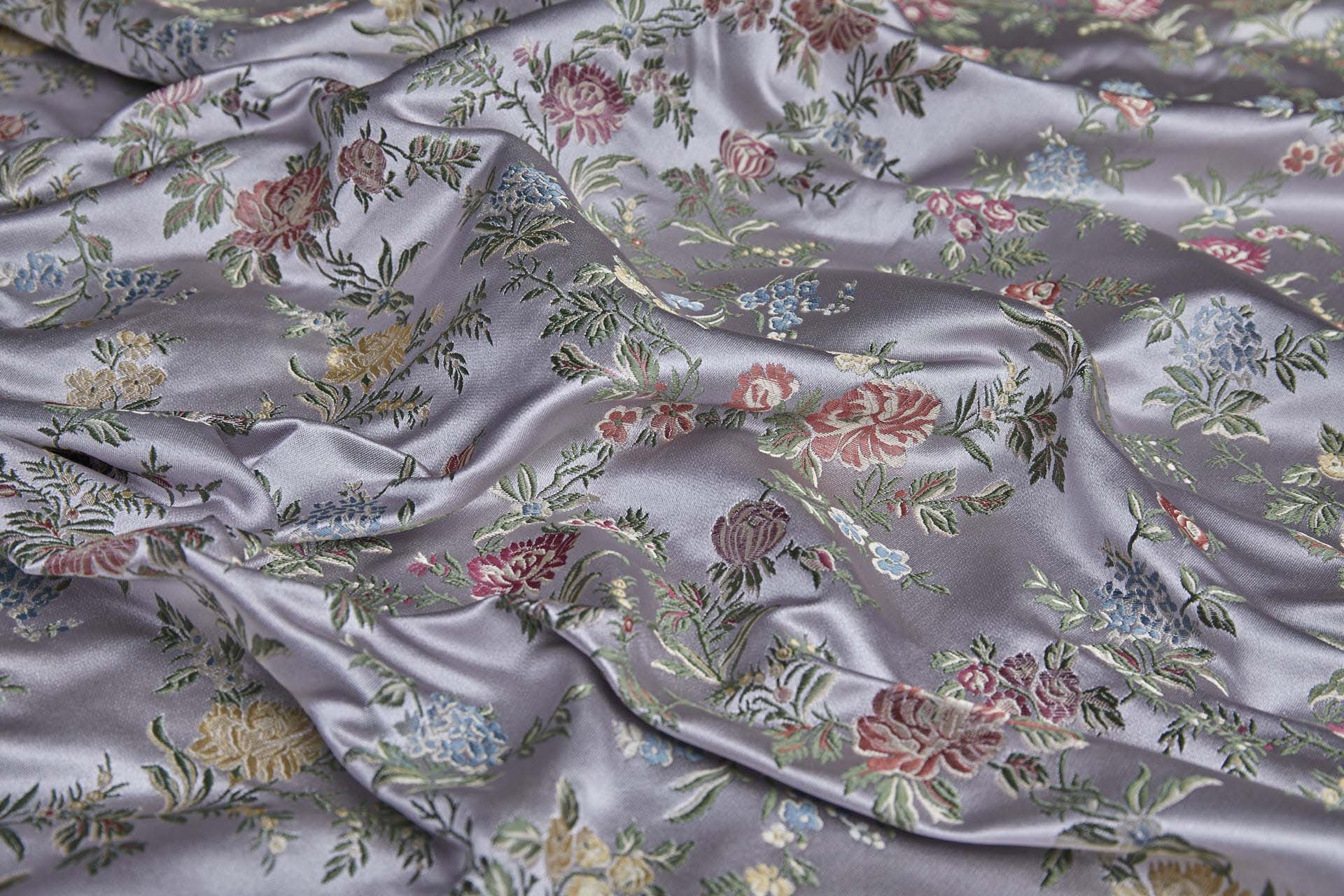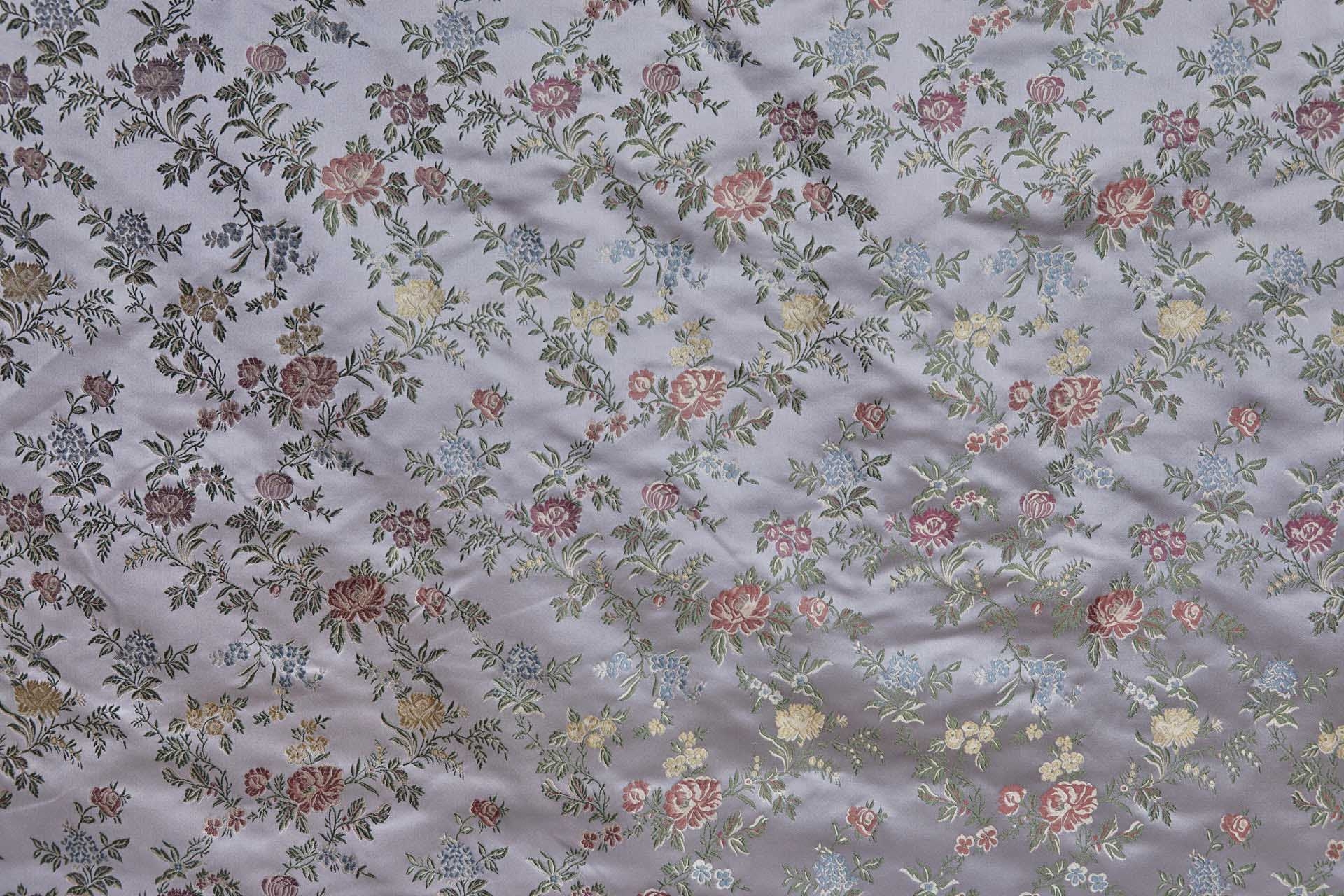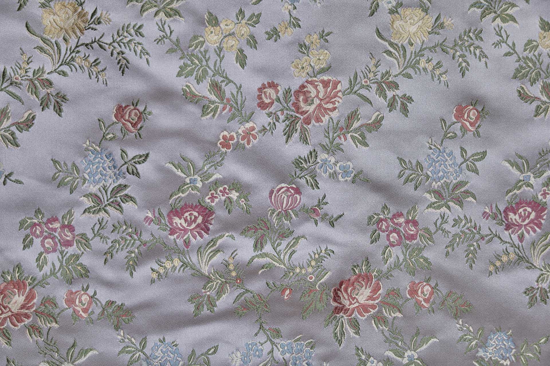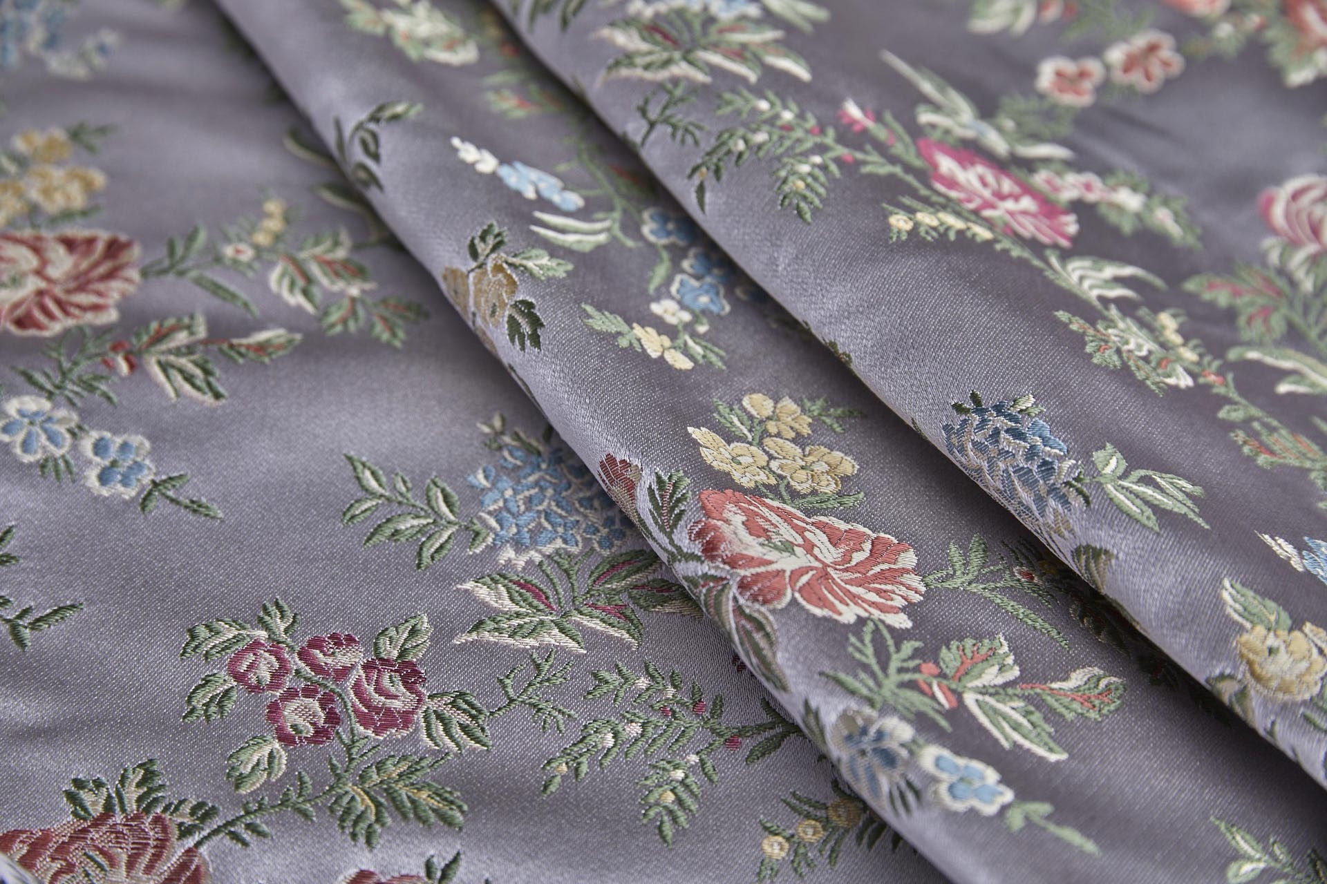 Made with a duchess satin base, this classic Regency style floral brocade has a multitude of colours on a pale lilac base. 140cm wide.