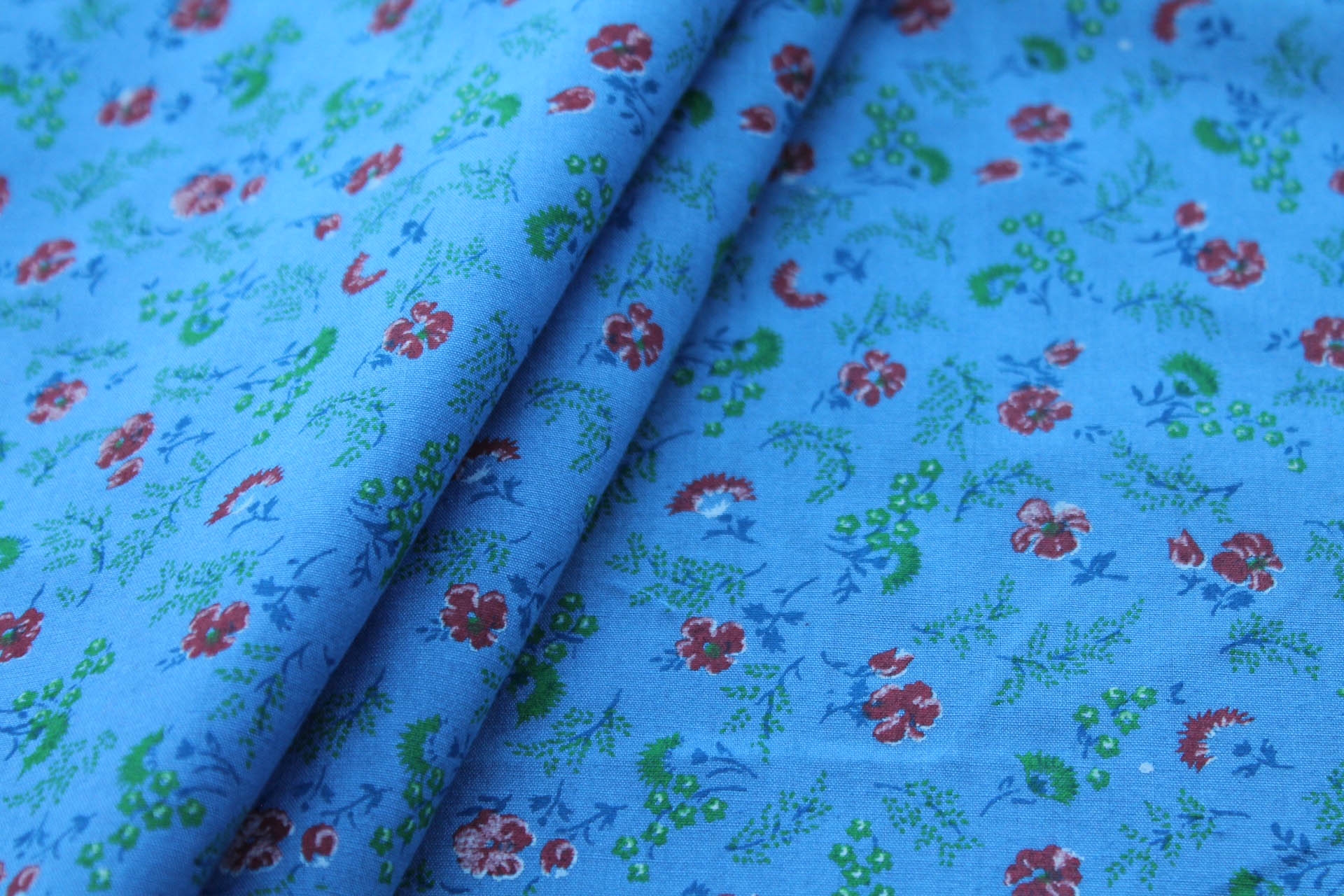 Vintage Printed Cotton - Red, Blue and Green on Mid Blue