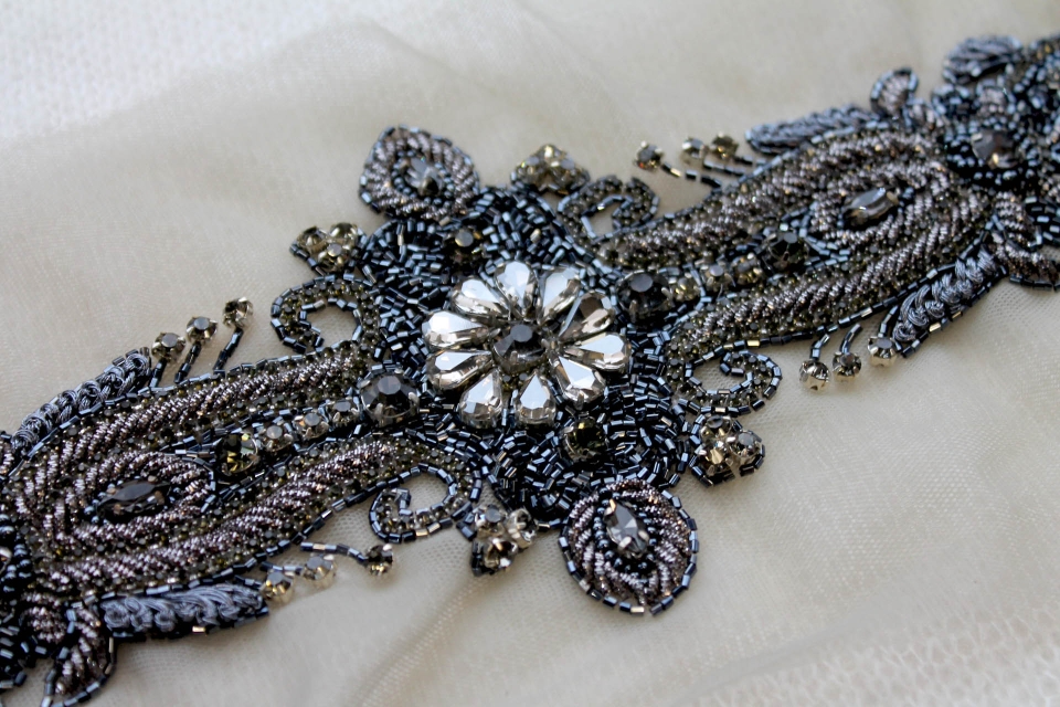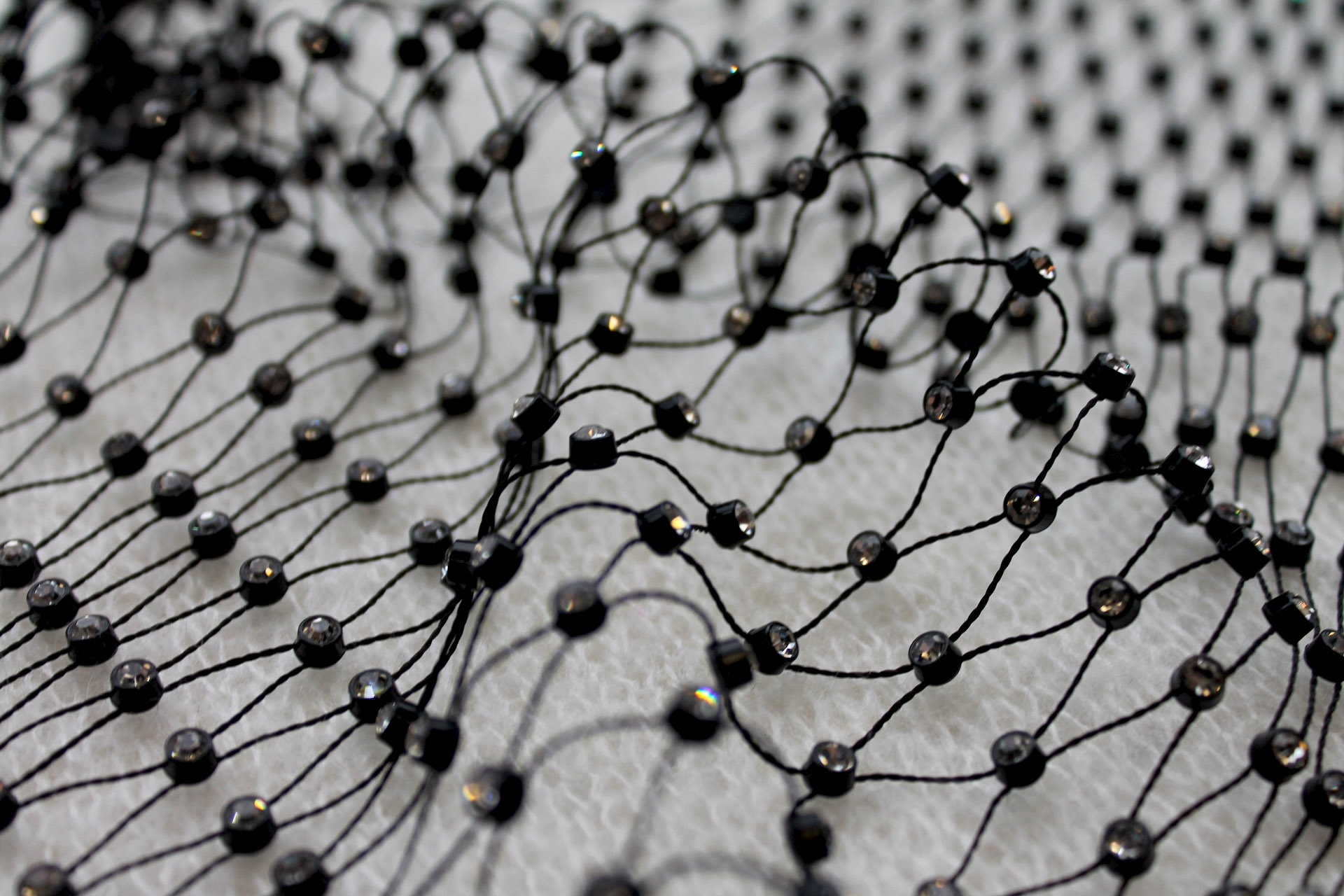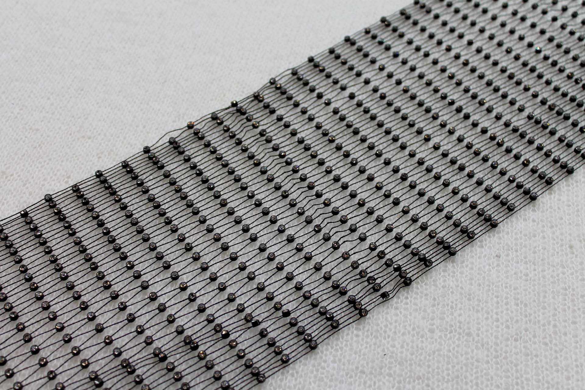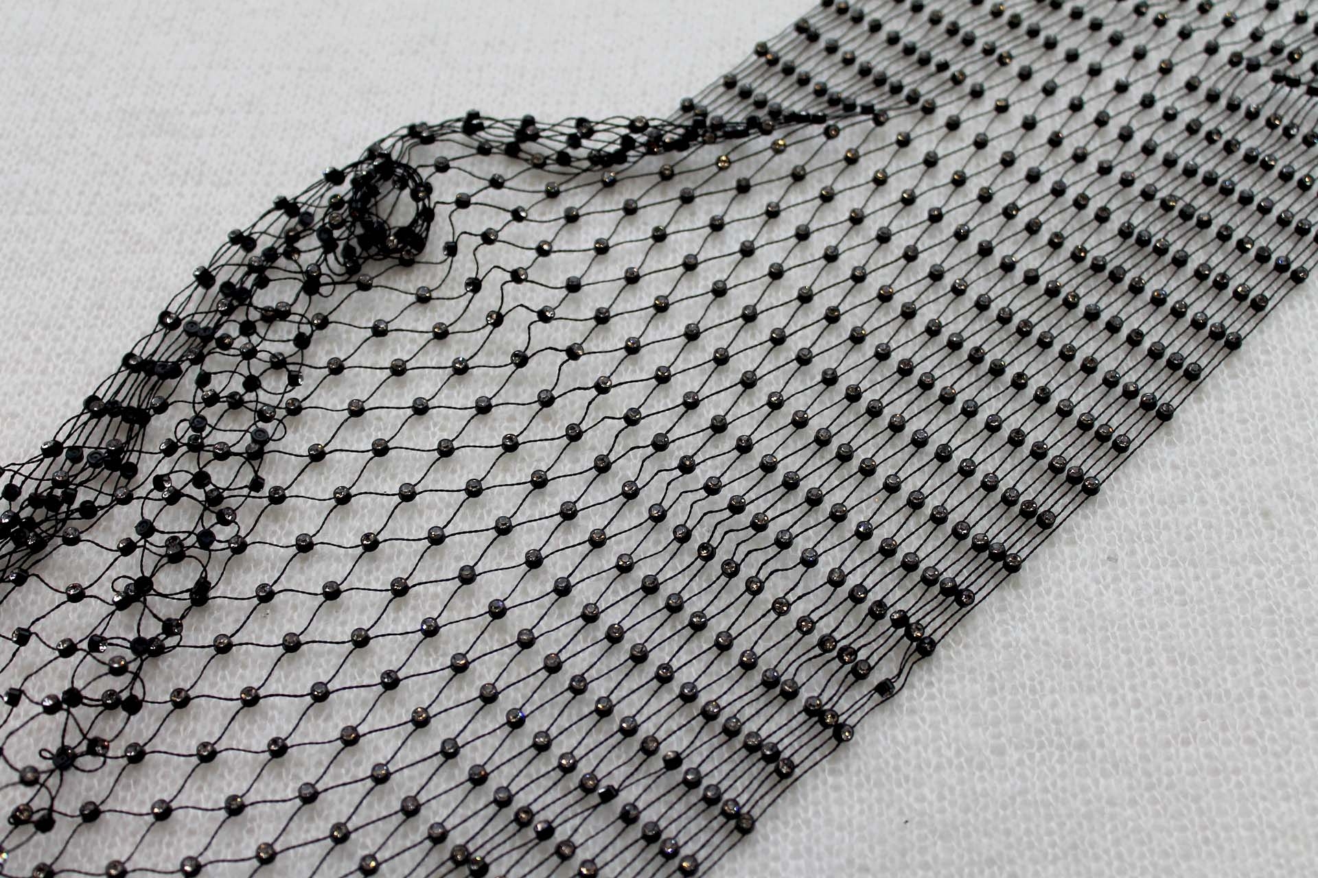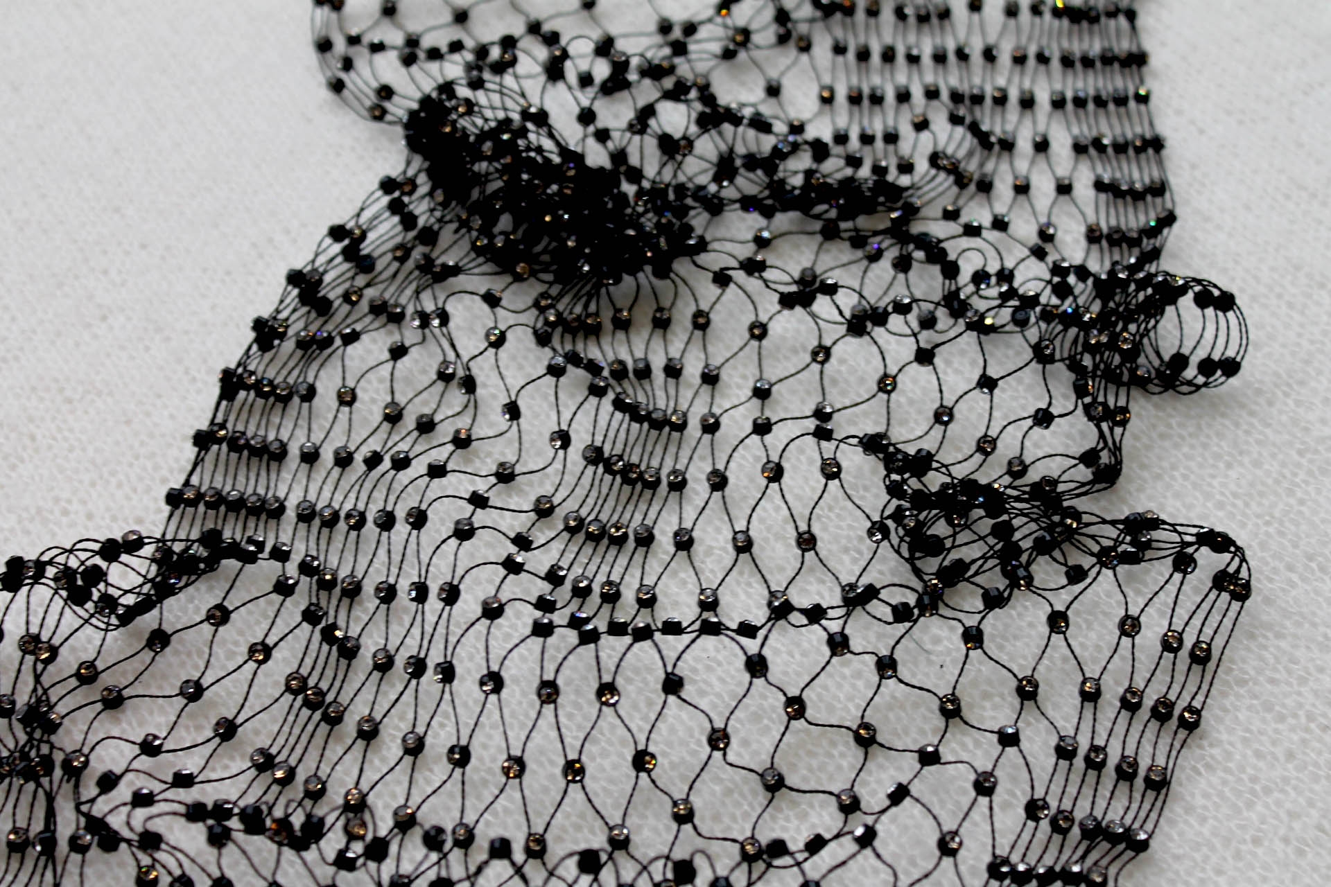 This is a fishnet type fabric with clear diamanté or rhinestones, in black. Also available in white with clear and black with multi colour diamanté.