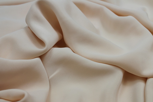 This is a gorgeous double silk crepe, pure silk with a nice heavy drape and handle, perfect for evening gowns that require an amount of flow and drape, as well as for soft tailoring. This fabric has been washed for softness, which gives a peach skin feel. Ivory in colour, with a matte sheen to it.