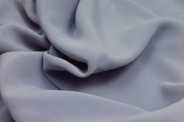 This is a gorgeous double silk crepe, pure silk with a nice heavy drape and handle, perfect for evening gowns that require an amount of flow and drape, as well as for soft tailoring. This fabric has been washed for softness, which gives a peach skin feel. Joyce blue is a pale blue with a hint of lilac to it.