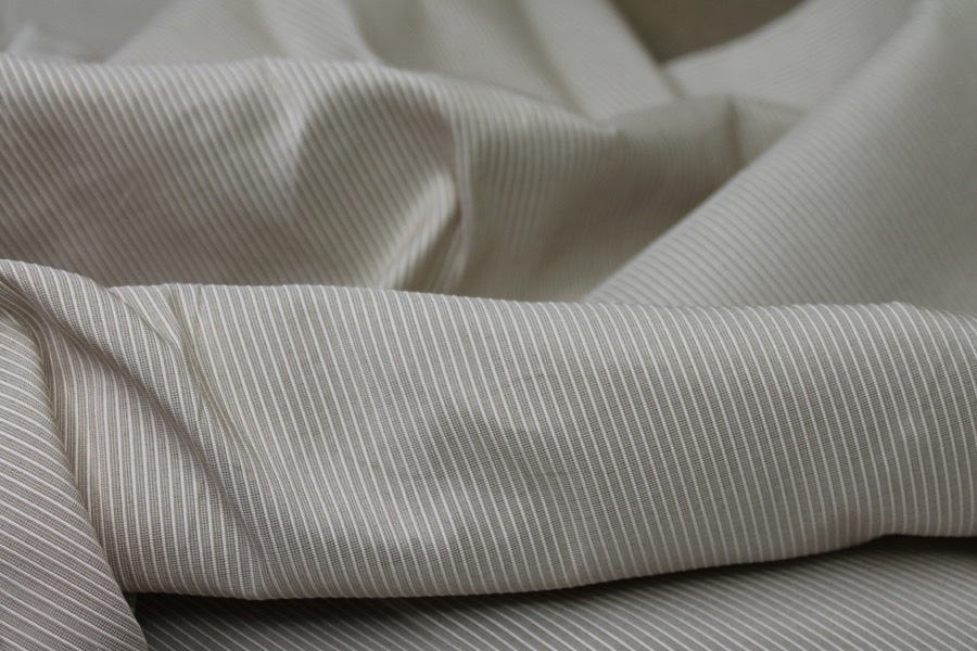 This silk cotton mix weave resembles an ottoman with a ribbed texture, in ecru, wide width at 140cm.