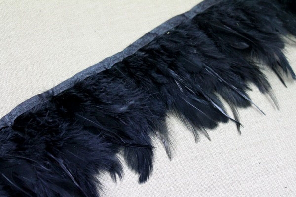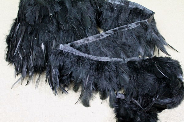 A decorative feather trim, in black. The longest feathers measure approximately 15cm, but most are approximately 10cm.
