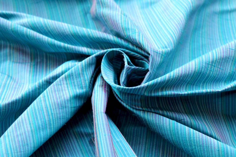 LAST PIECE - Multi Striped Silk Dupion - TurquoiseSpecial Price £30.00 Regular Price £35.00