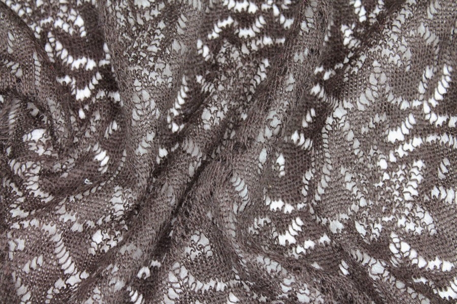 This is a soft flower pattern lace type knit in dark brown, great for jumpers, cardigans, scarves etc. 80% wool, 20% polyester.