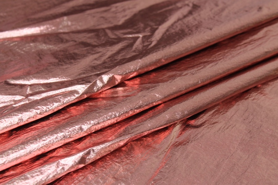 The fabric is quite sheer, and the foil print gives a somewhat crumpled effect. 140cm wide.