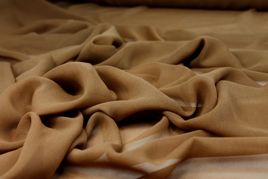 A high quality, fine silk georgette in a gingerbread brown colour. 100% silk, 135-140cm wide.