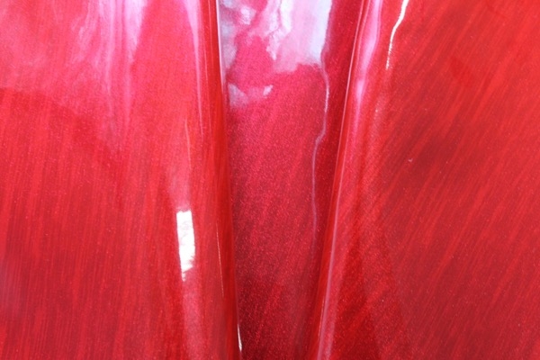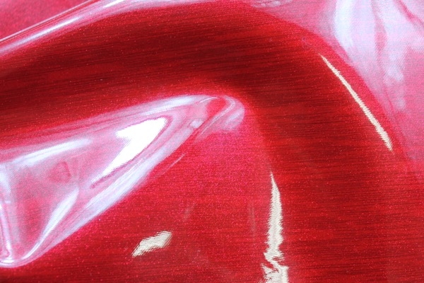 A European made glossy PVC in red with embedded glitter. A nice firm crisper quality.
