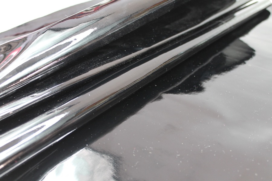 A European made glossy PVC type leatherette in glossy black. A nice firm crisp quality.