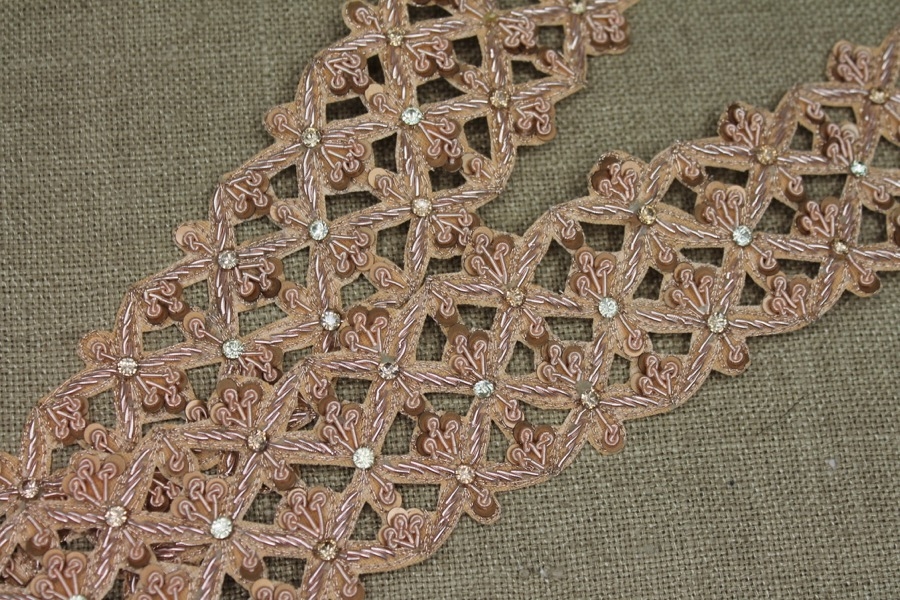 Gold Corded Cut Out Fabric with Pearls and Blue Jewels