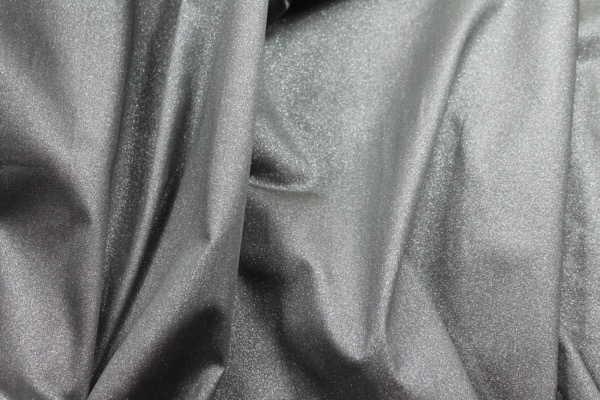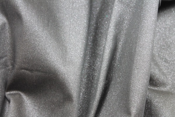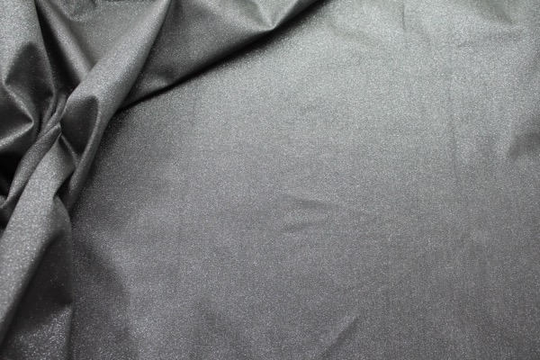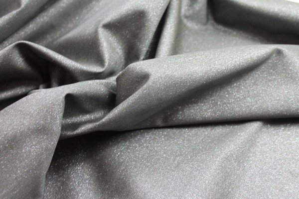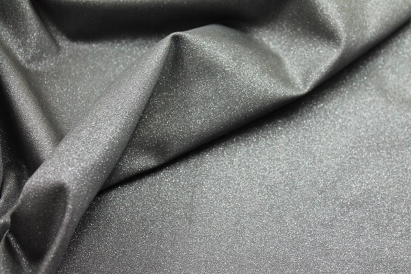 Stretch lightweight cotton denim, coated in a greenish dark grey glitter giving it a slight metallic sheen. Perfect for shirts, jeans shorts and overalls or even dresses and skirts and lighter weight garments. 140cm wide.
