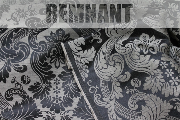 100% thick linen in grey, with a spot embroidery in a similar colour.