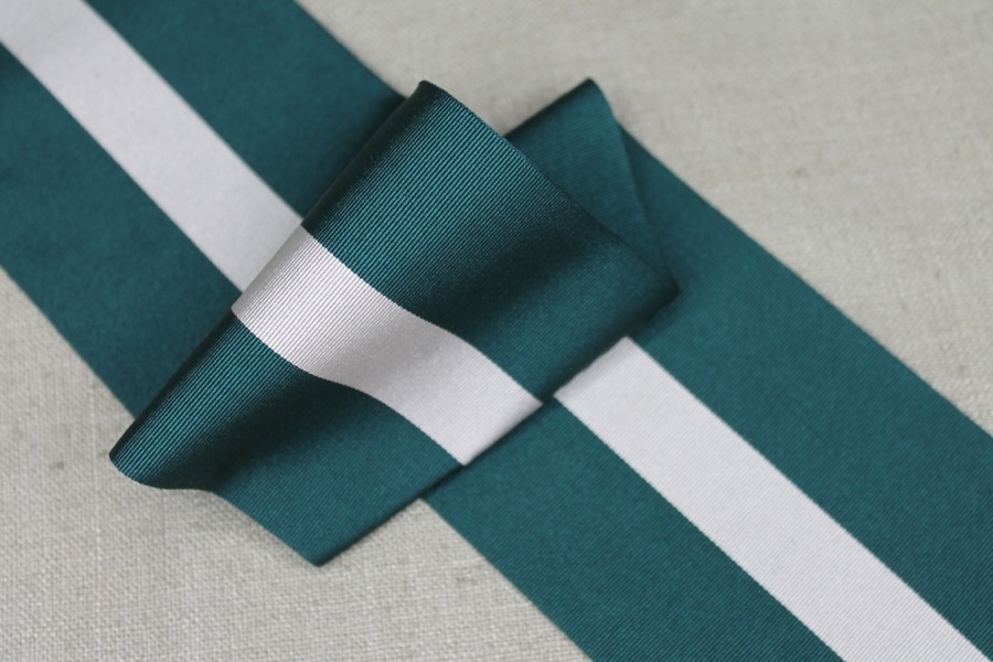 This is a mixed fibre grosgrain ribbon, in royal blue and burgundy in a triangle pattern, 5cm wide. Only available in this colour.