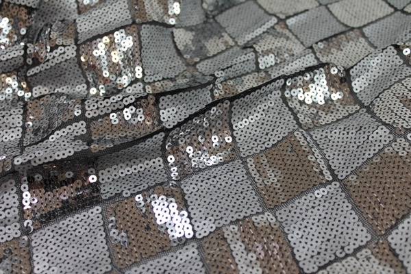 This one has silver and matte silver sequins on a black tulle. 140cm wide.