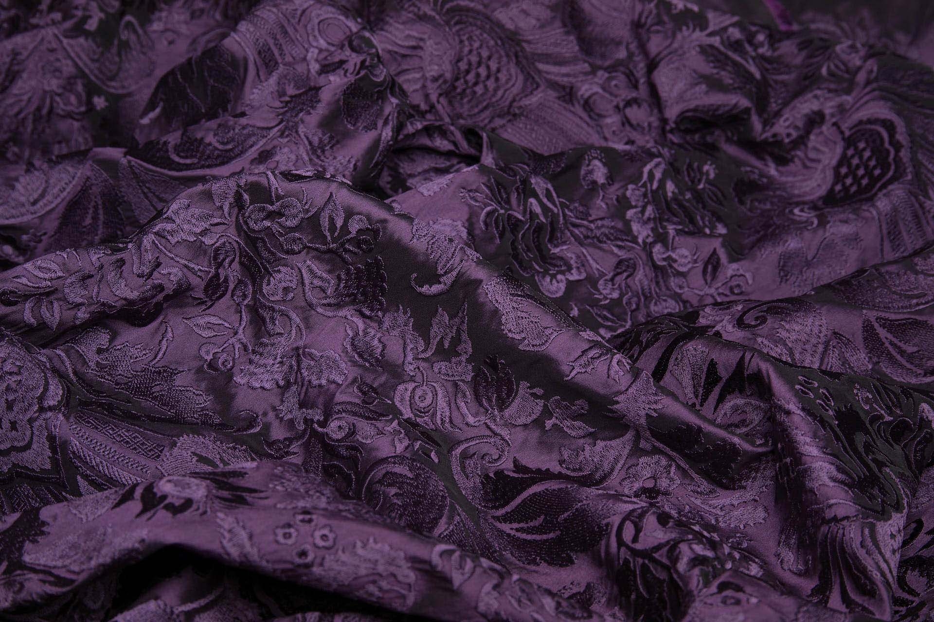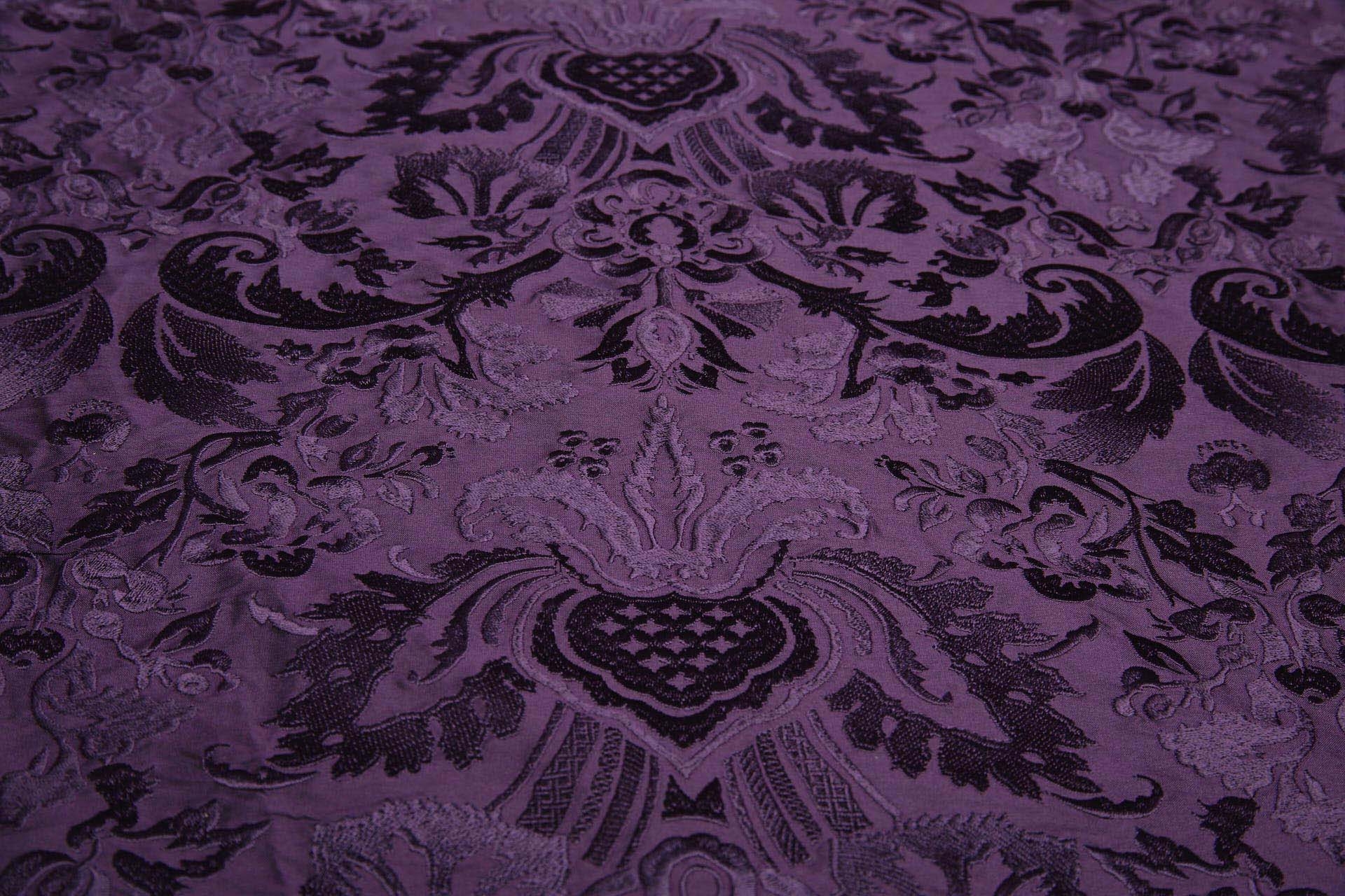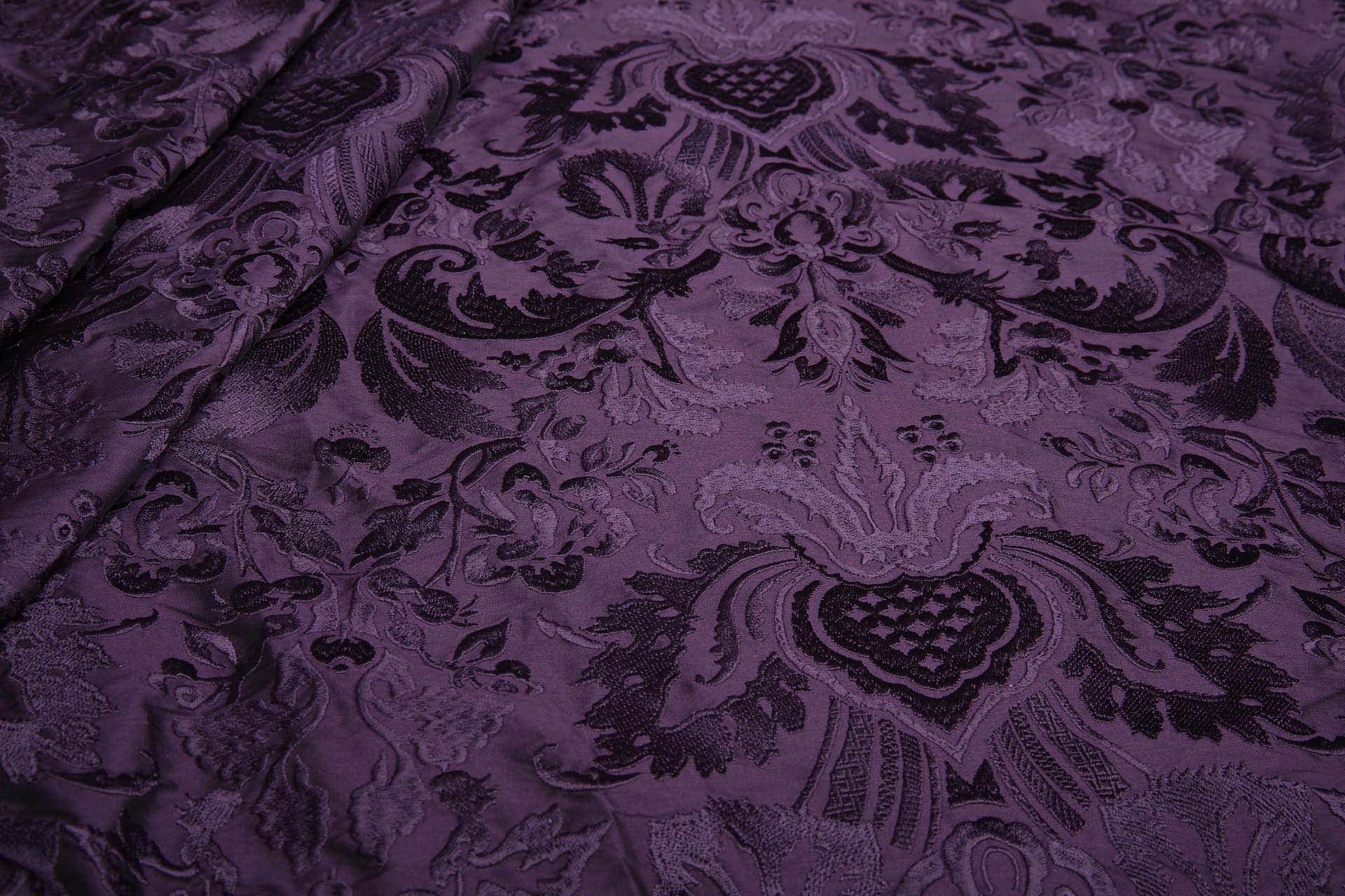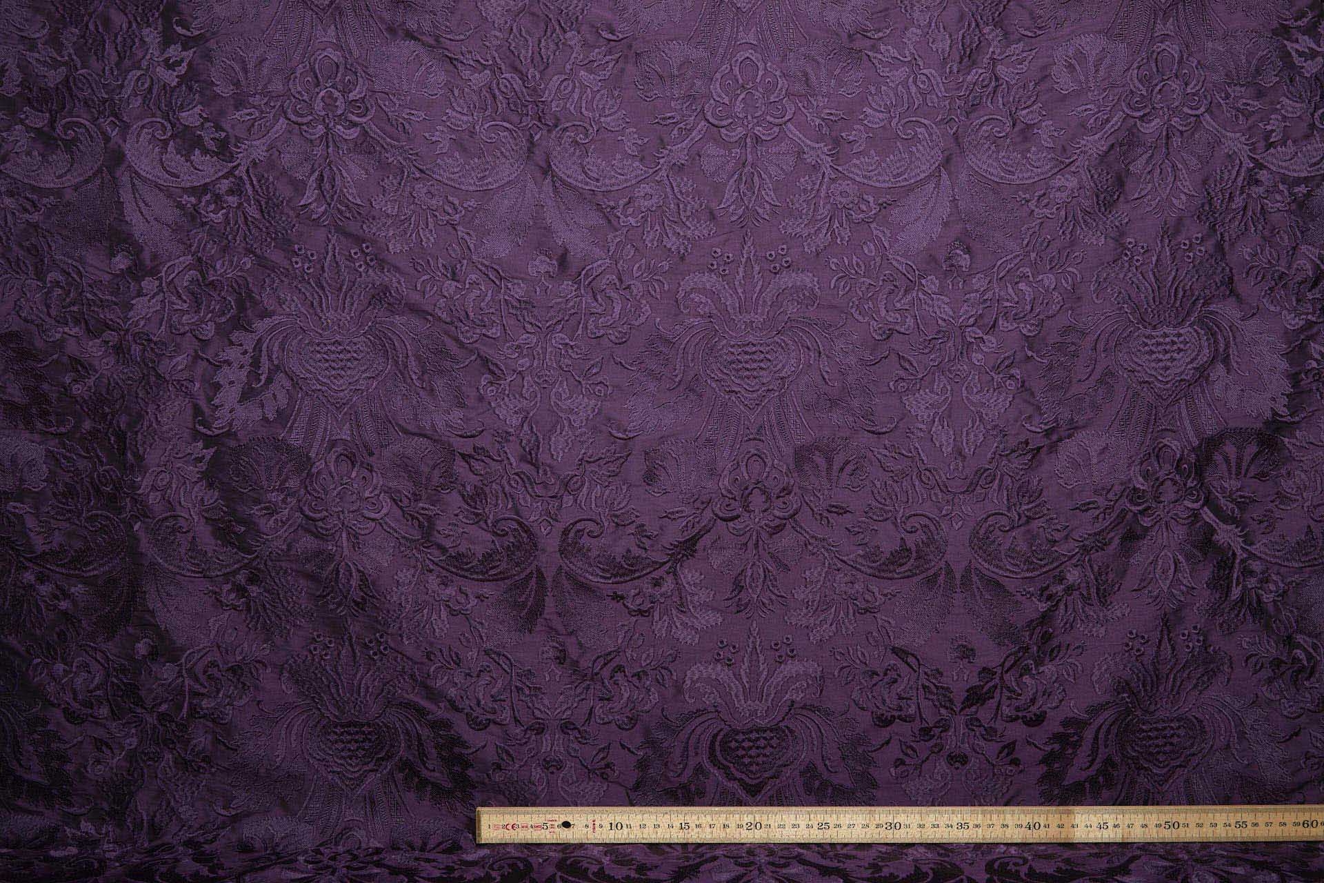 A beautiful polyester dupion base in a rich plum/aubergine colour with a detailed jacquard style embroidery in a matching colour. This new version is 135 cm wide.