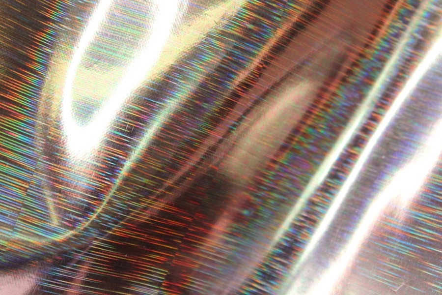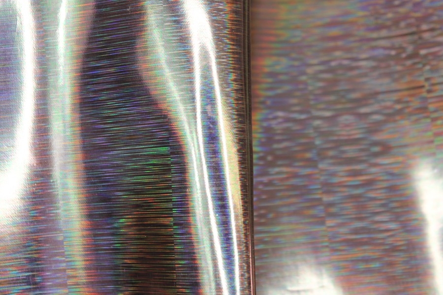 This is a heavier quality leatherette with a holo stripe mirror foil finish, in bronze.