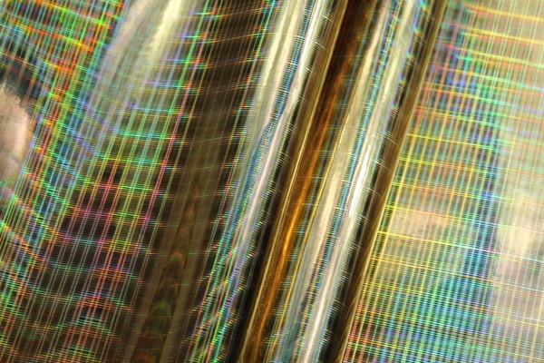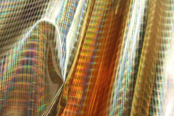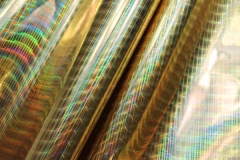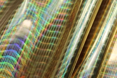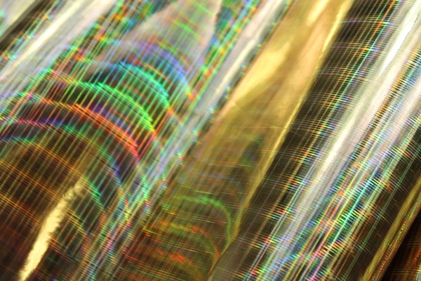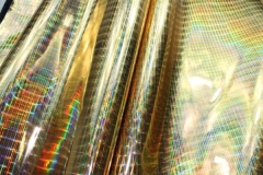 This is a heavier quality leatherette with a high gloss holographic finish, in gold. This quality fas a thin film on it that needs to be removed to achieve the full holographic effect. Please note, this mirror like finish will potentially crackle and bend when sewing it.